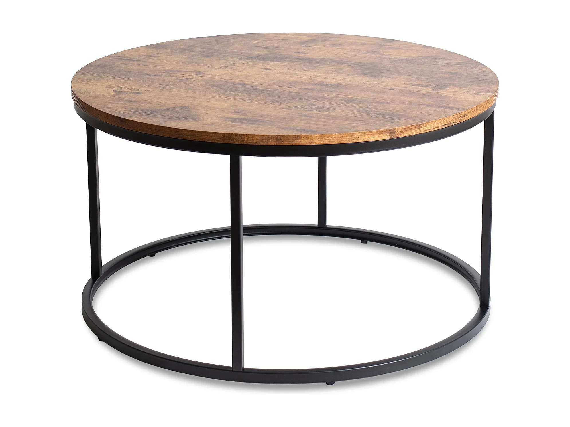 Tavolino da caffè rotondo da 80 cm, tavolino da caffè rustico con base in metallo, mobile con accenti industriali