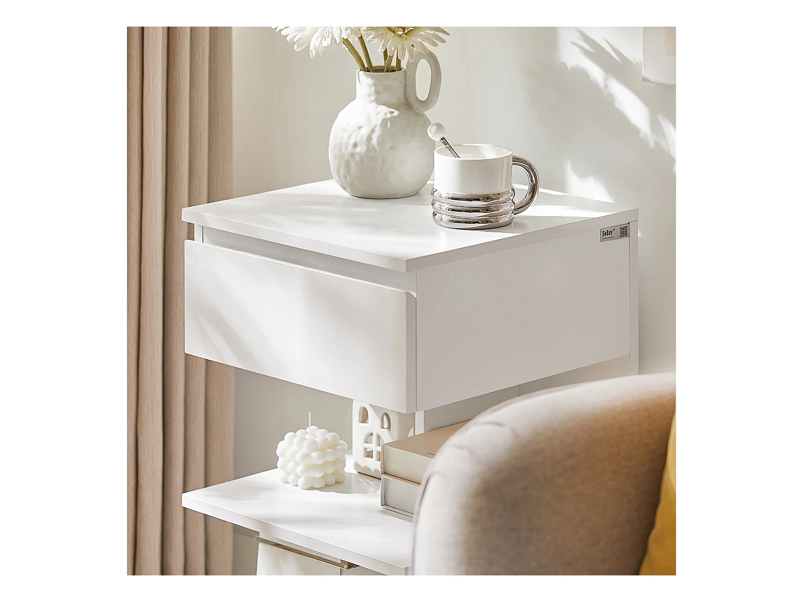 SoBuy Tavolino comodino alto con cassetto e ripiani Tavolino divano L30xP28xA74cm FBT91-W