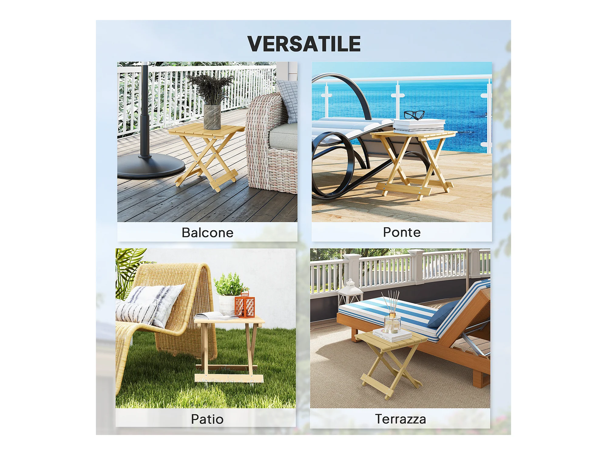 Tavolino da esterno e interno pieghevole a doghe in legno