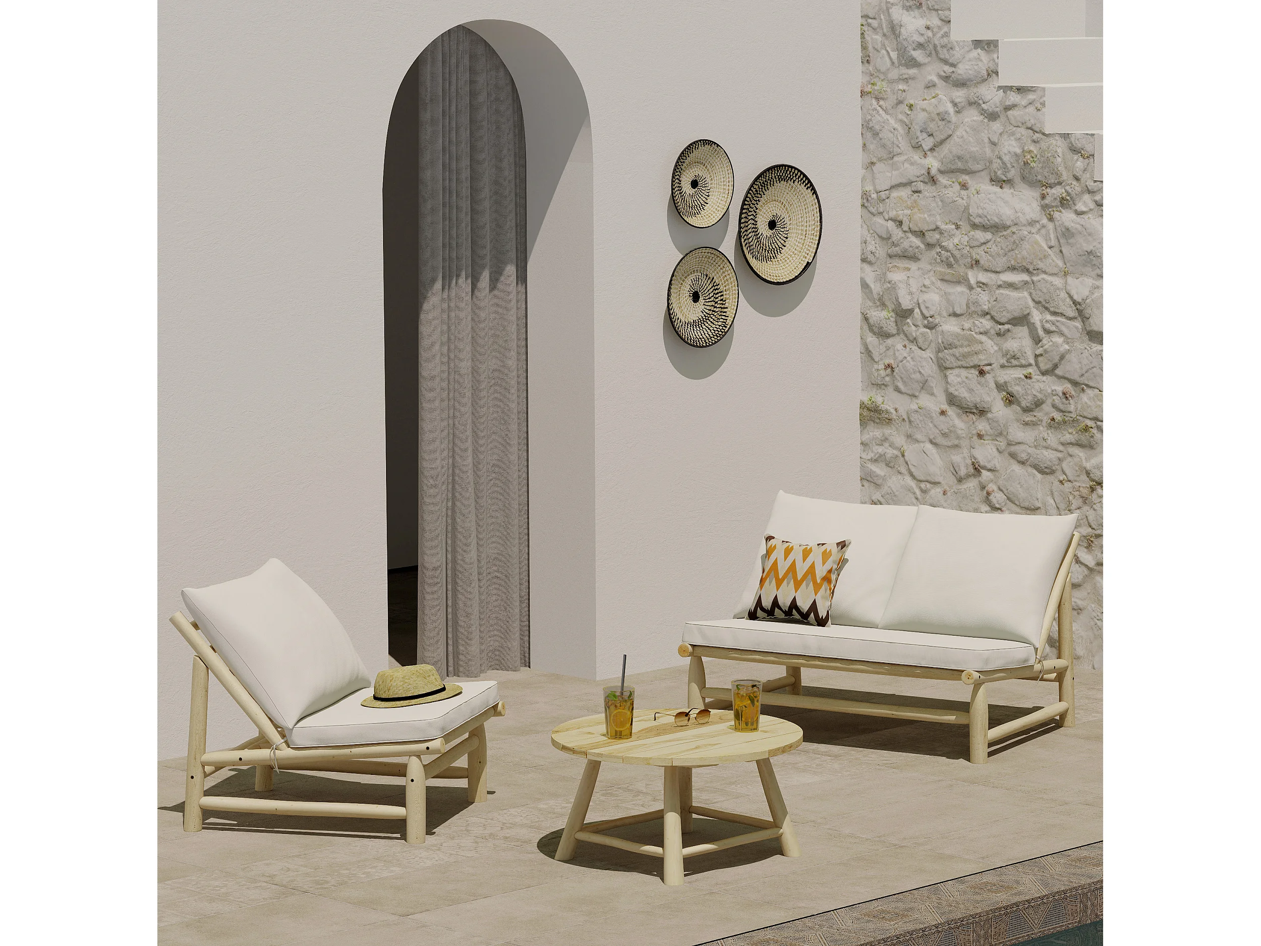 Set Salotto da Giardino 3pz con Cuscini Grigio Chiaro Bambù