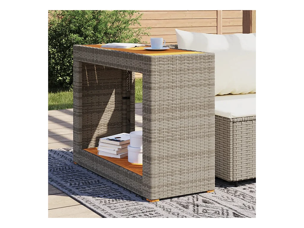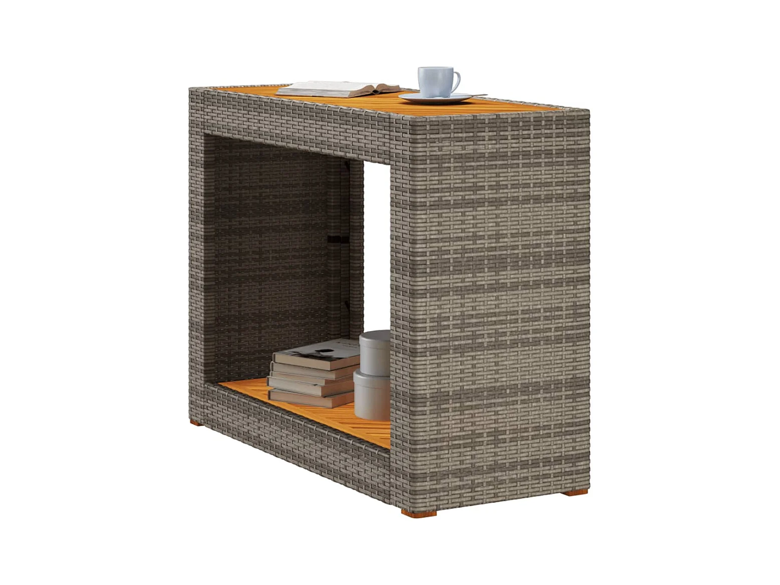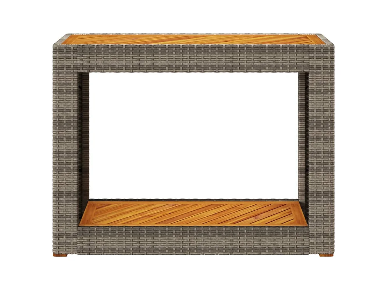 Tavolino da Giardino Piano Legno Grigio 100x40x75 cm Polyrattan