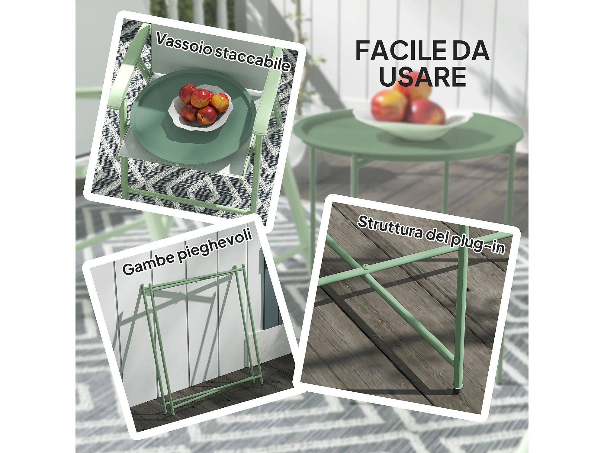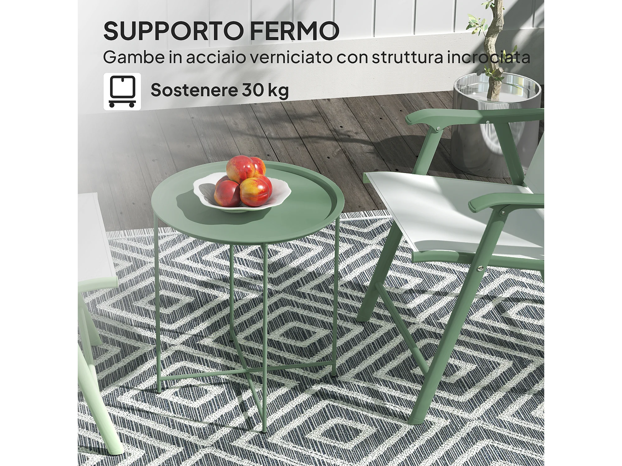 Tavolino da giardino rotondo con vassoio rimovibile Ø46 cm verde
