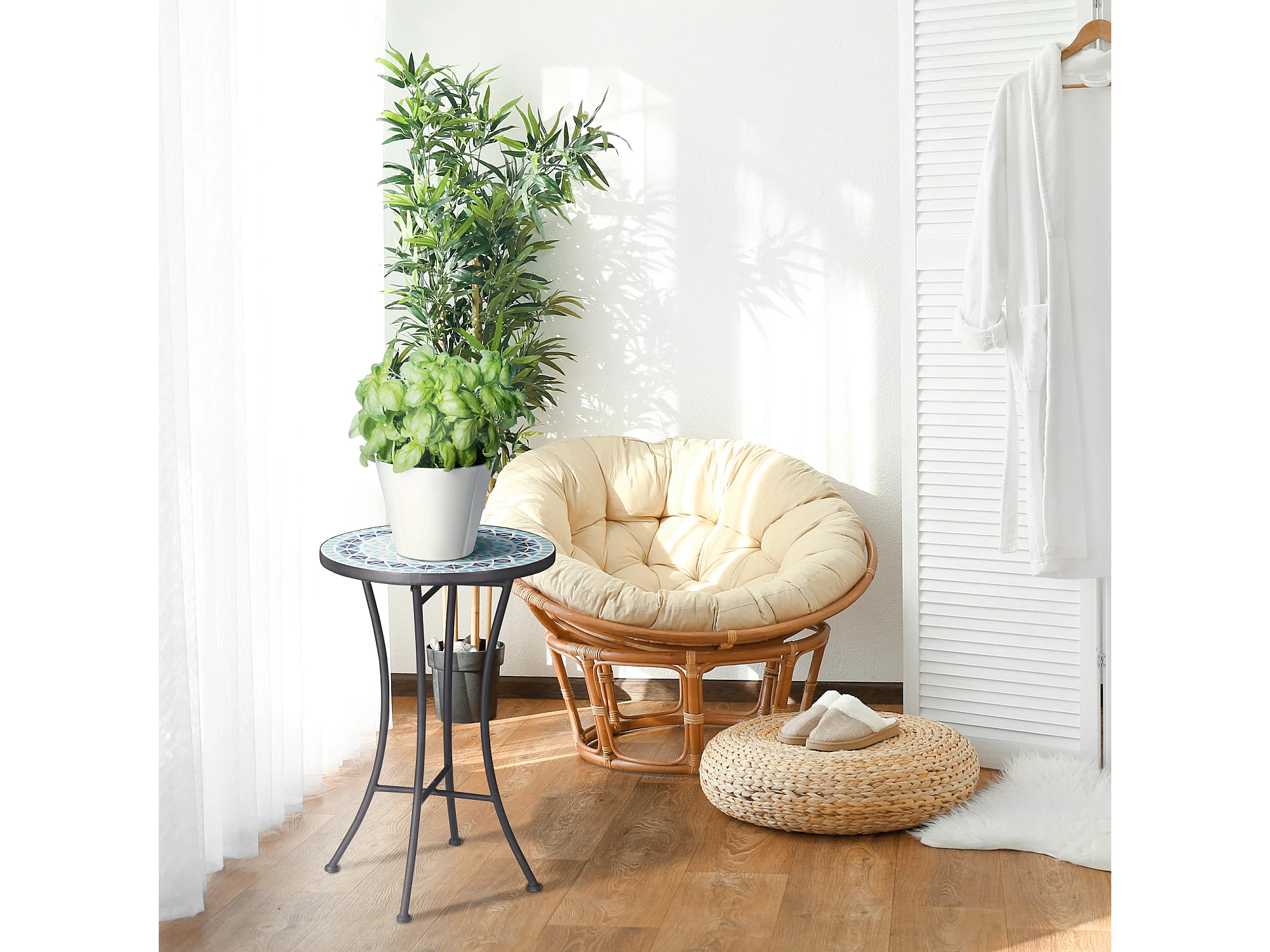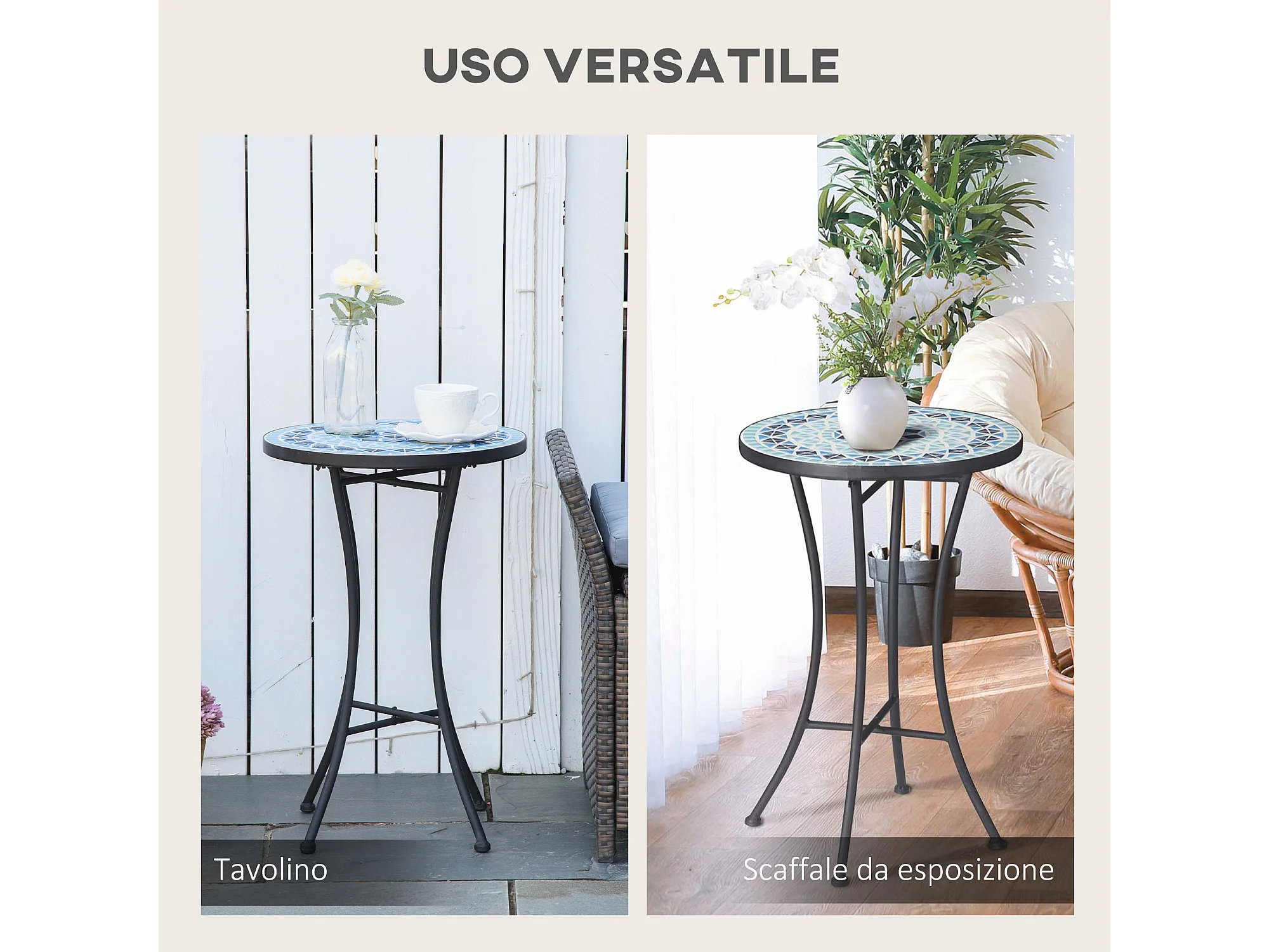 Tavolino da giardino rotondo in metallo e ceramica blu