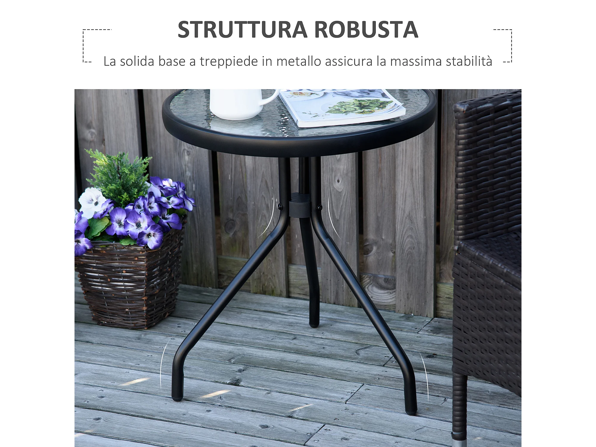 Tavolino da giardino rotondo ripiano vetro struttura metallo