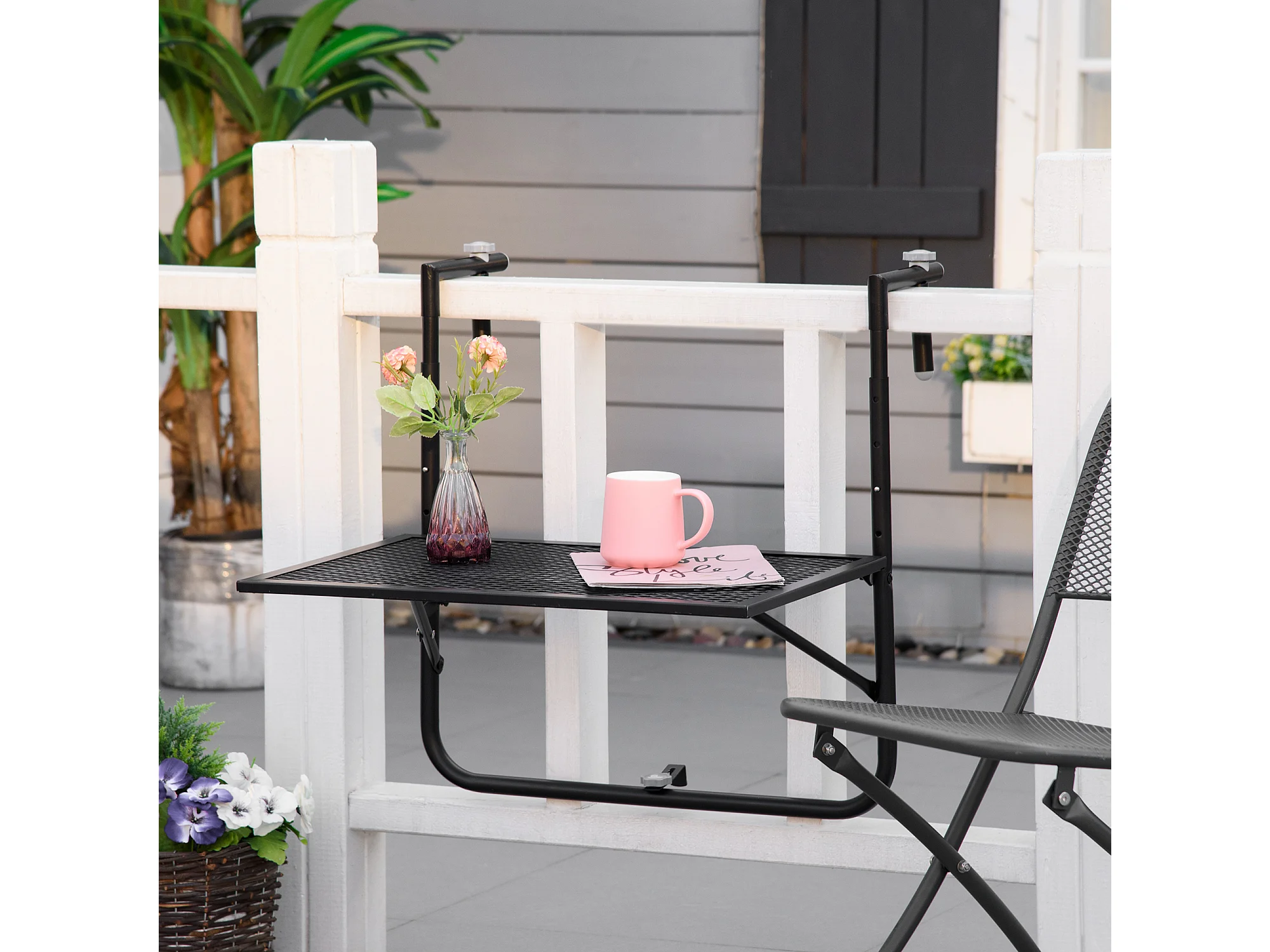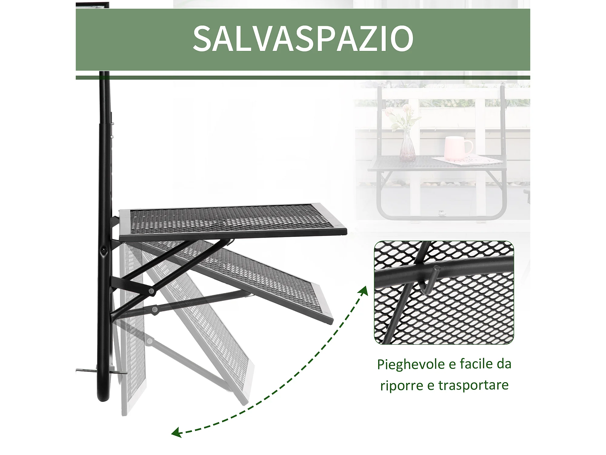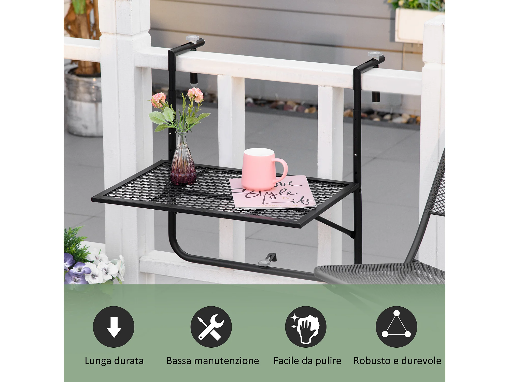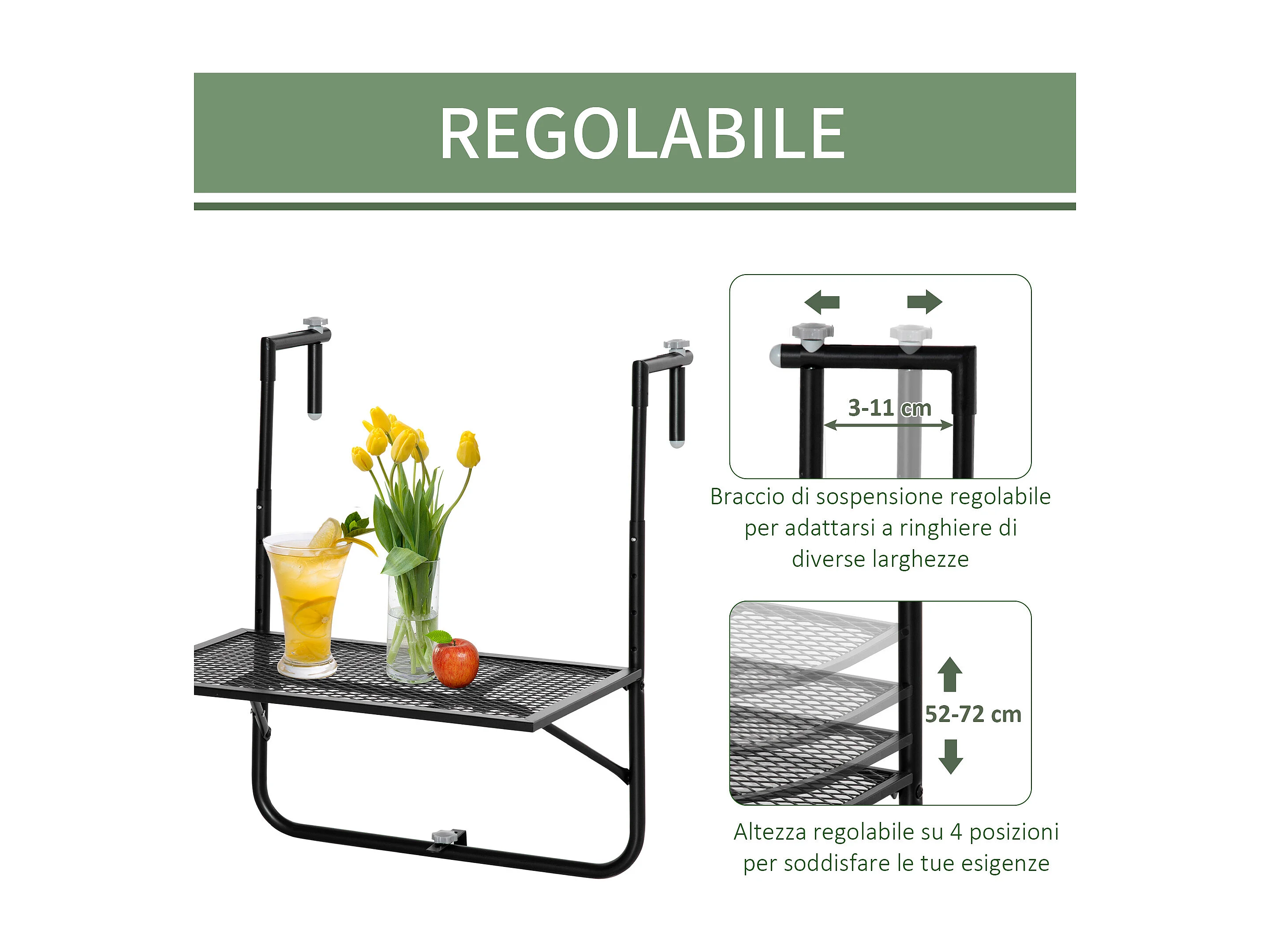Tavolino da ringhiera pieghevole altezza regolabile nero