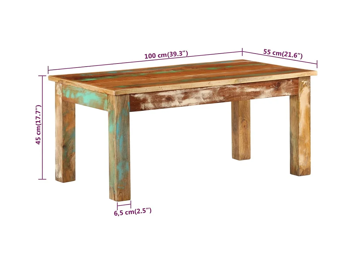 Tavolino da Salotto 100x55x45 cm in Legno Massello di Recupero
