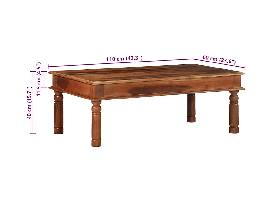 Tavolino da Salotto 110x60x40 cm in Legno Massello di Acacia