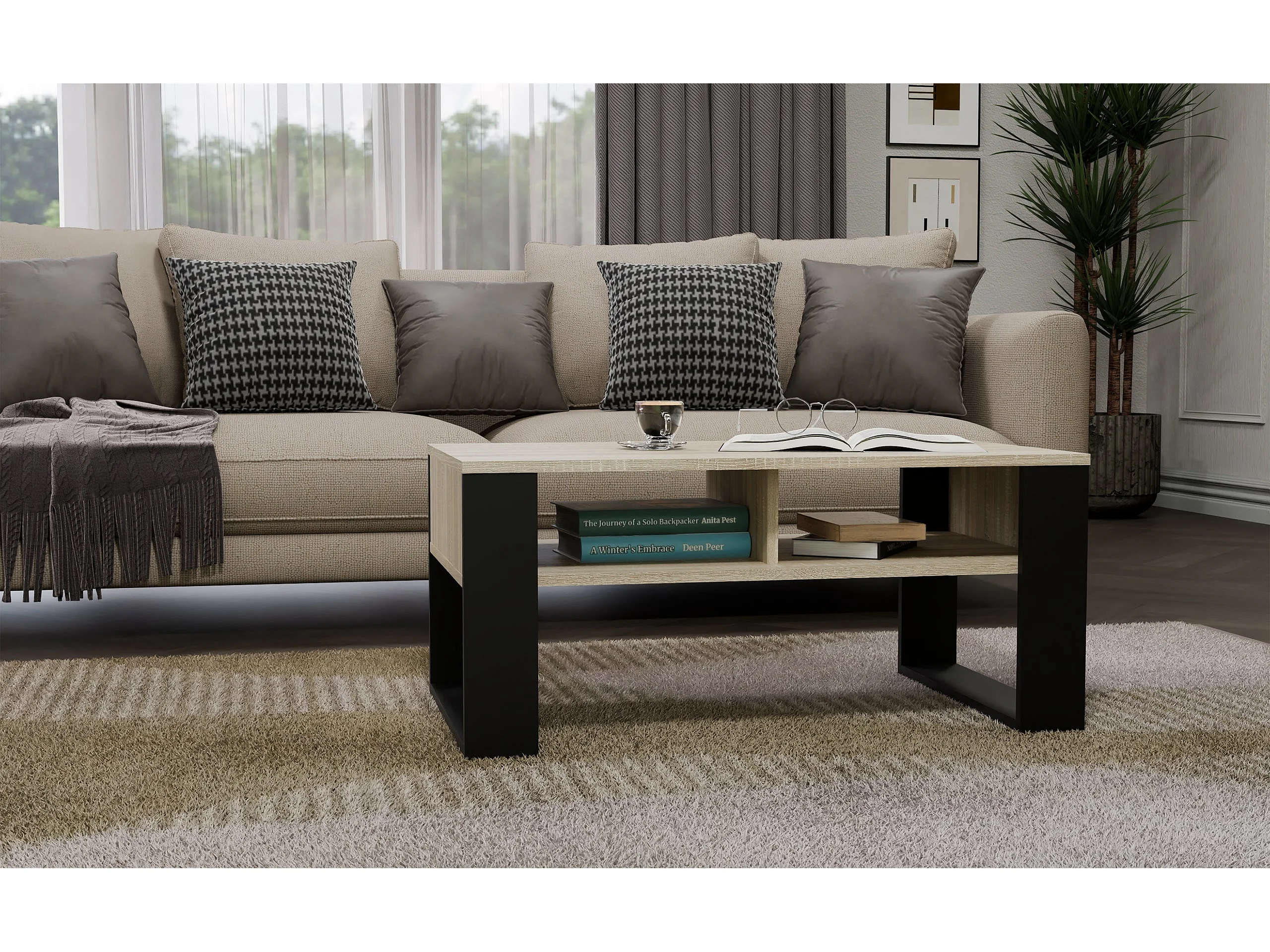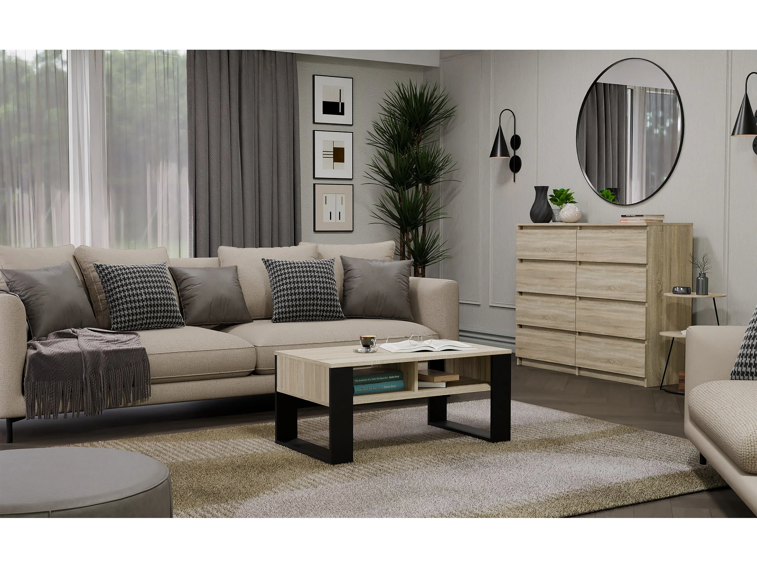 Tavolino da salotto 58x50x90 cm con 4 vani rovere e nero TST12