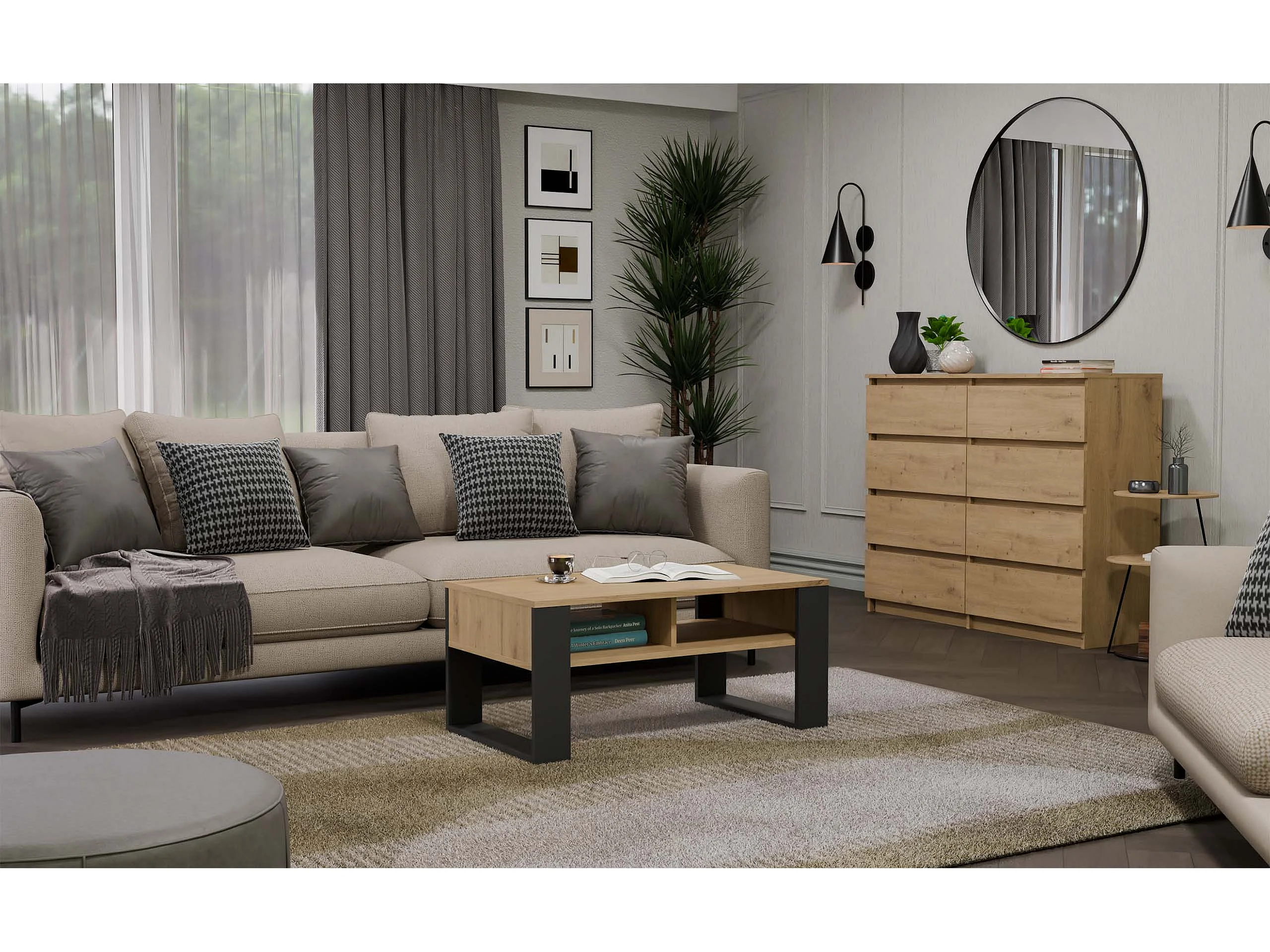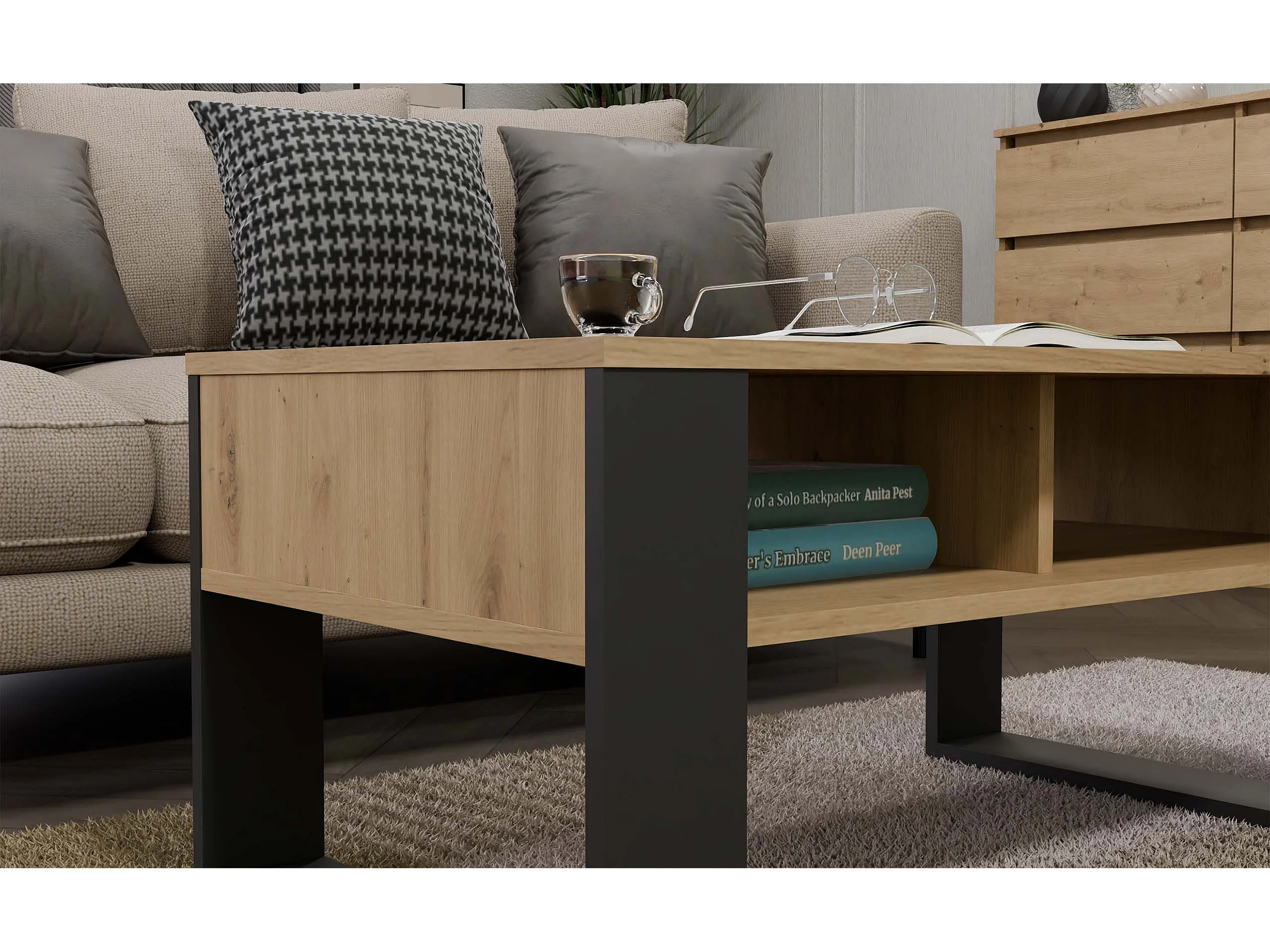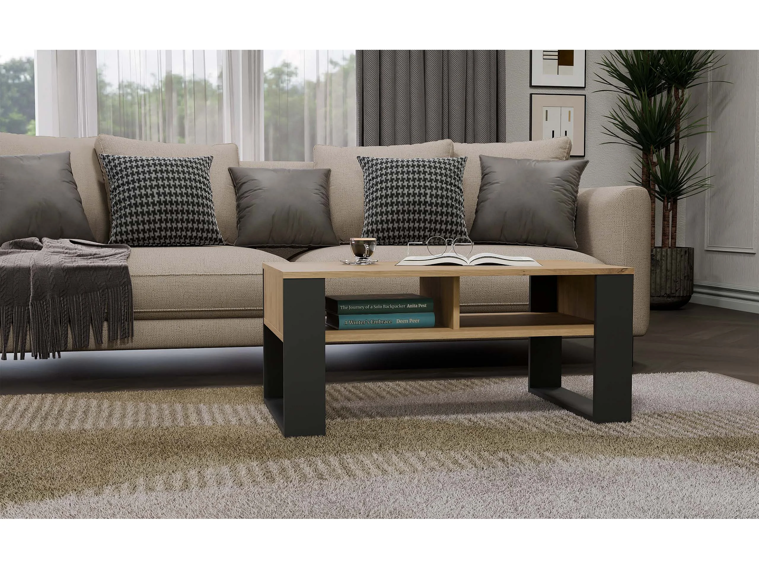 Tavolino da soggiorno moderno 120x53 antracite e rovere naturale TLK3
