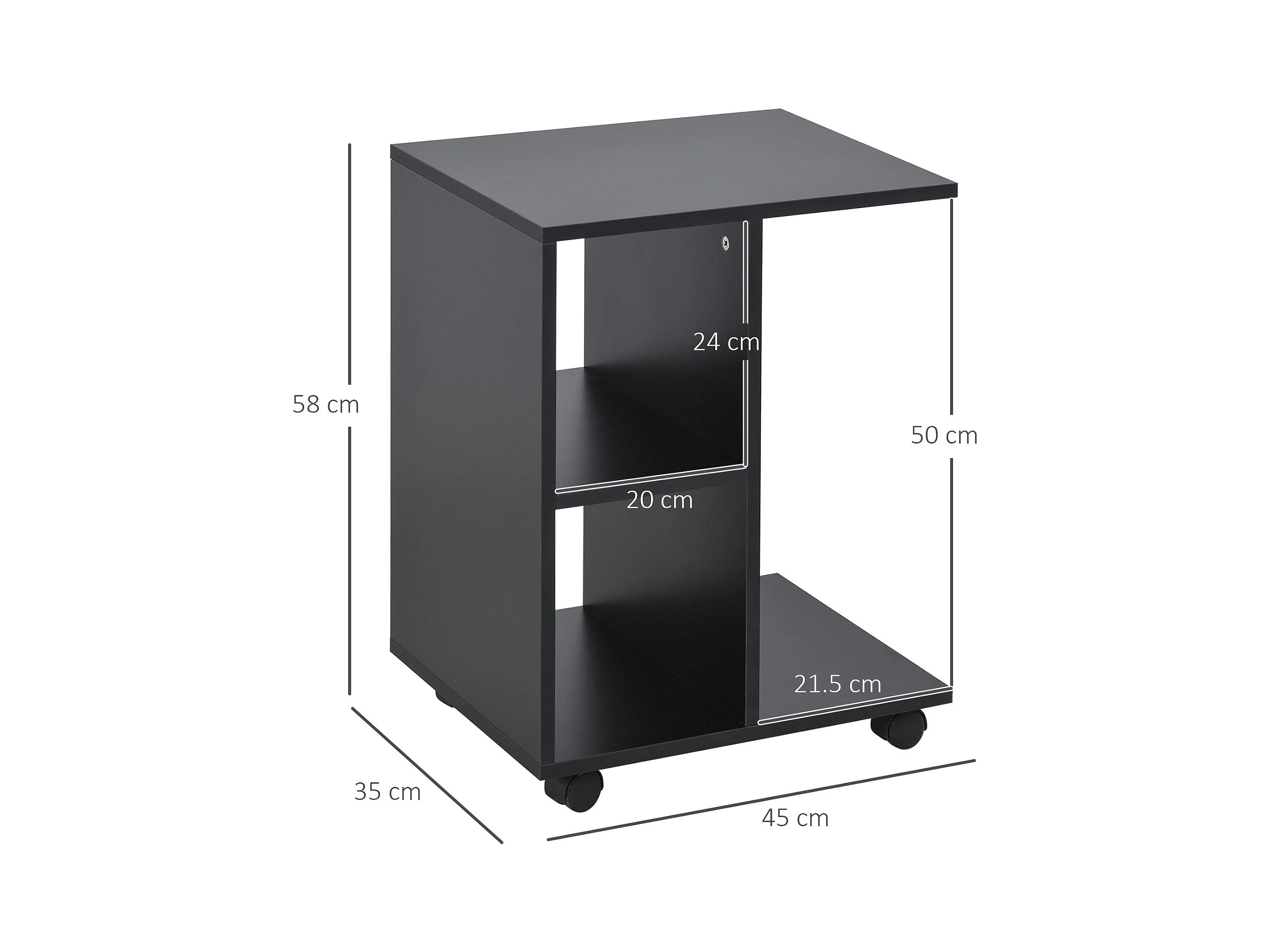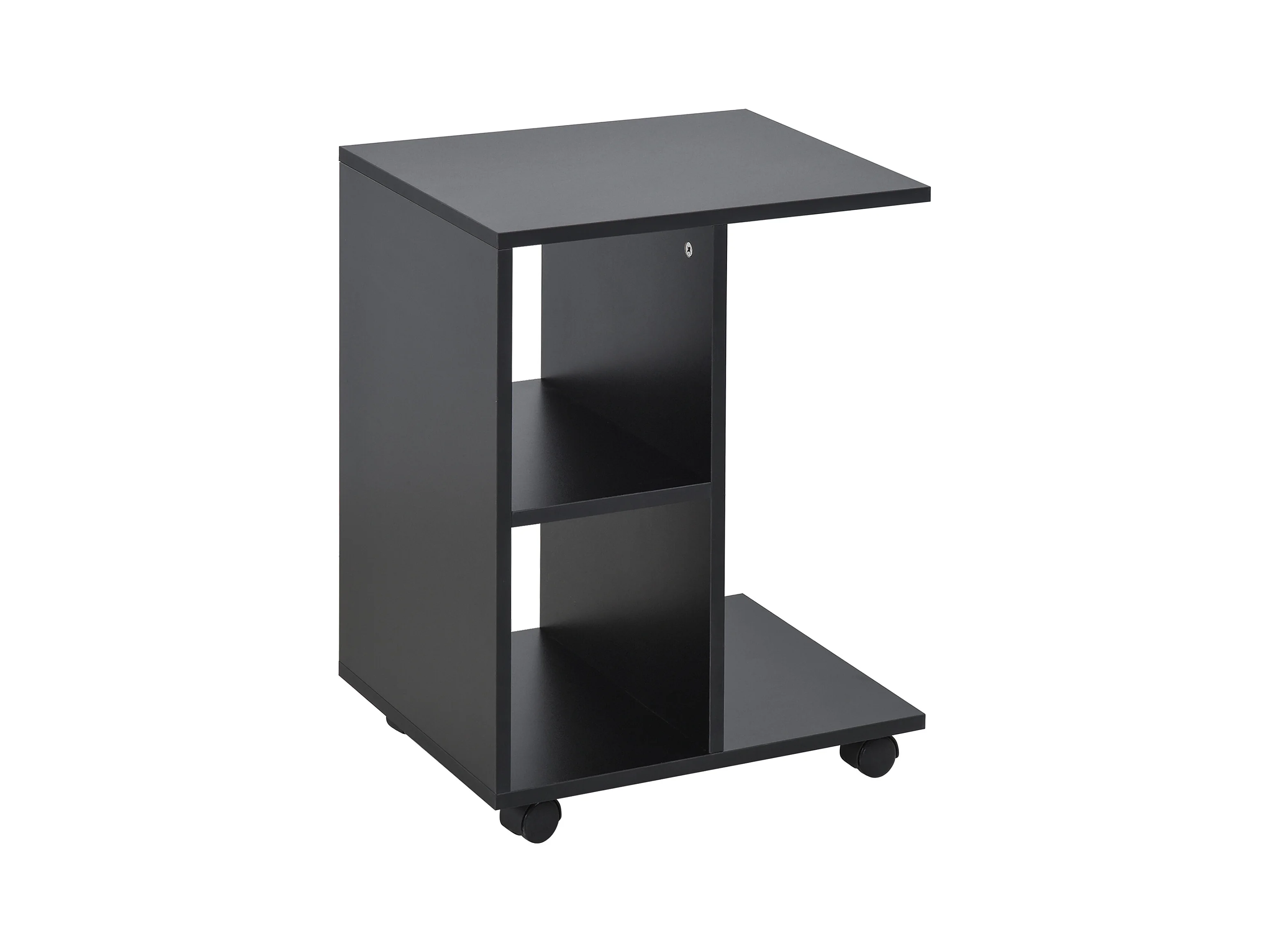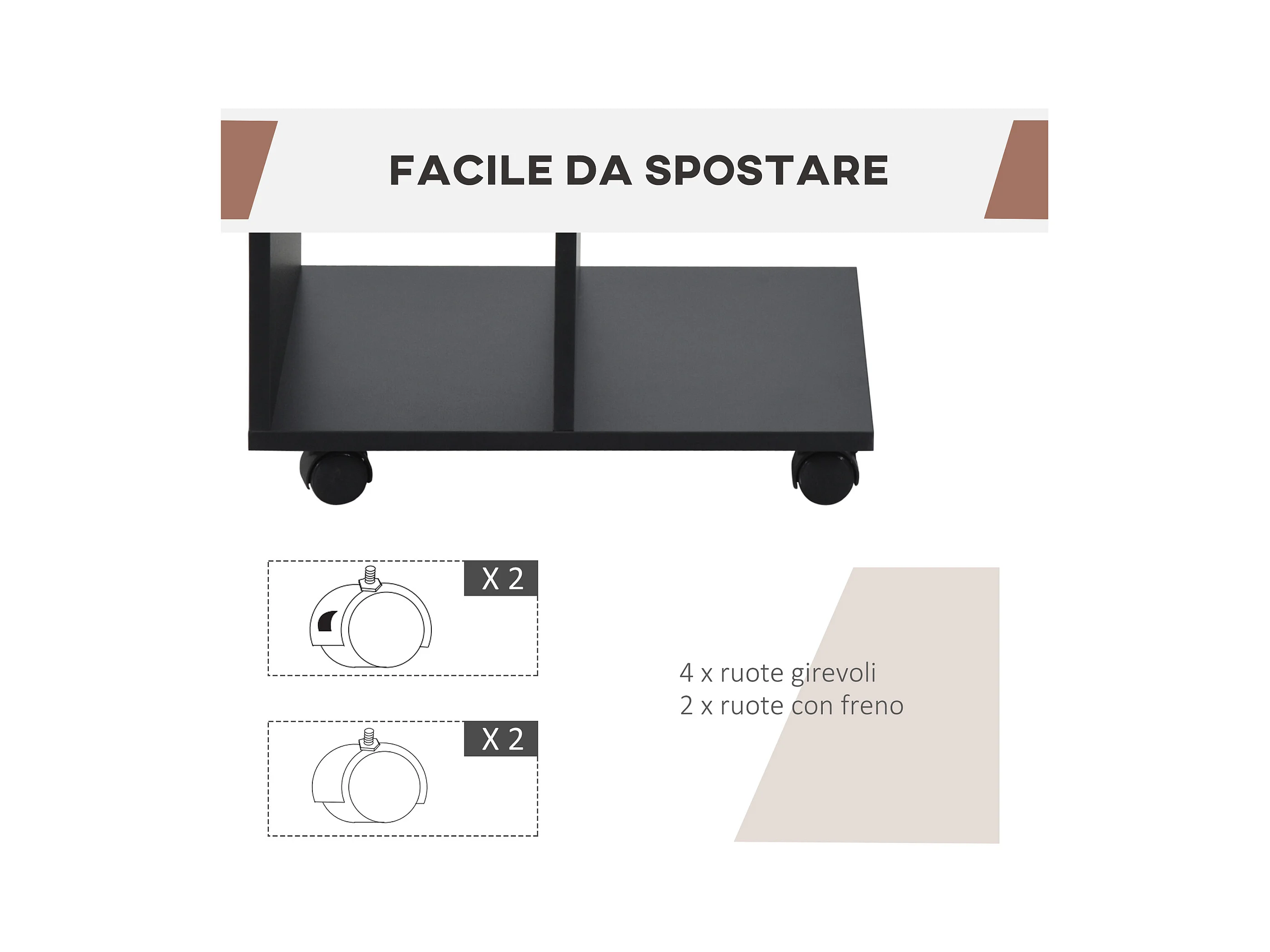 Tavolino da salotto a c 2 ripiani aperti 4 ruote girevoli nero