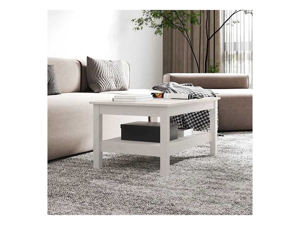 Tavolino da Salotto Bianco 80x50x40 cm Legno Massello di Pino