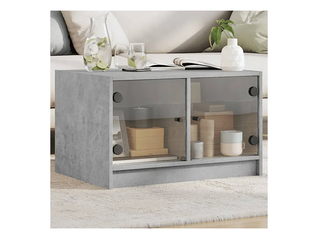 Tavolino da Salotto con Ante in Vetro Grigio Cemento 68x50x42cm