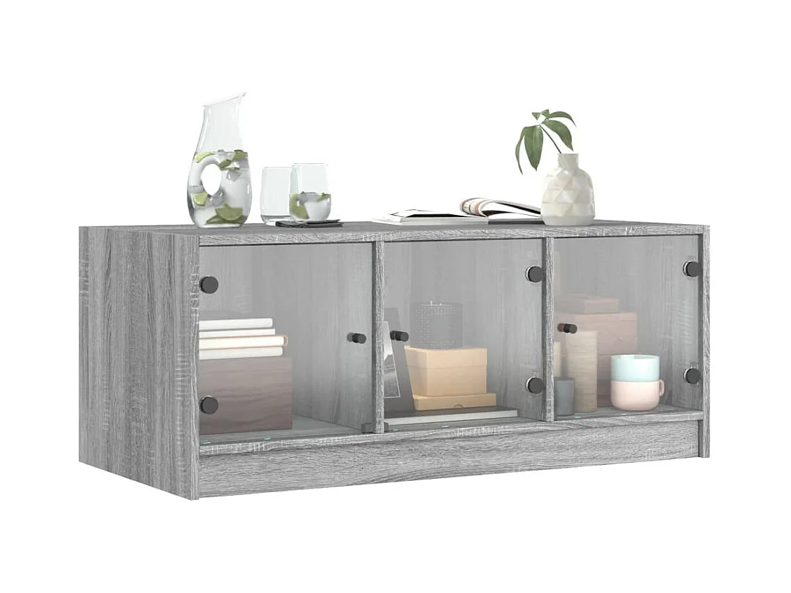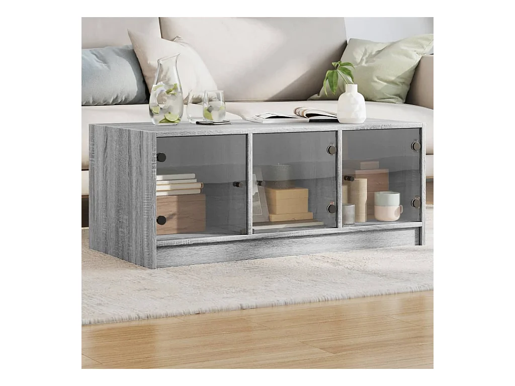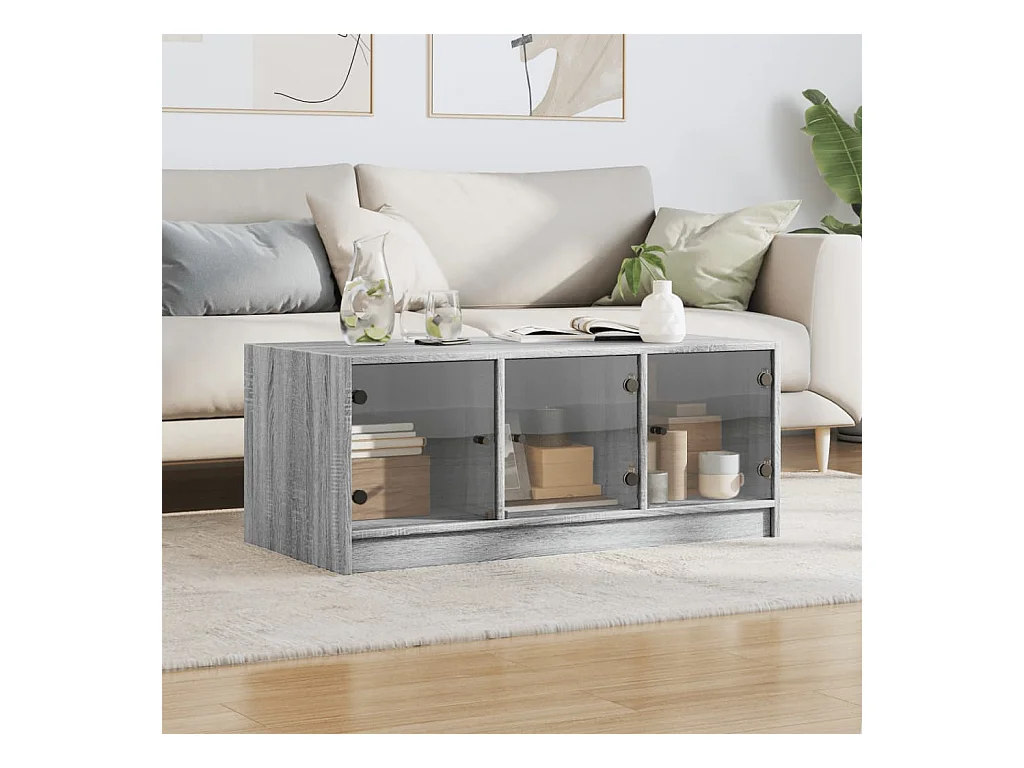 Tavolino da Salotto con Ante in Vetro Grigio Sonoma 102x50x42cm