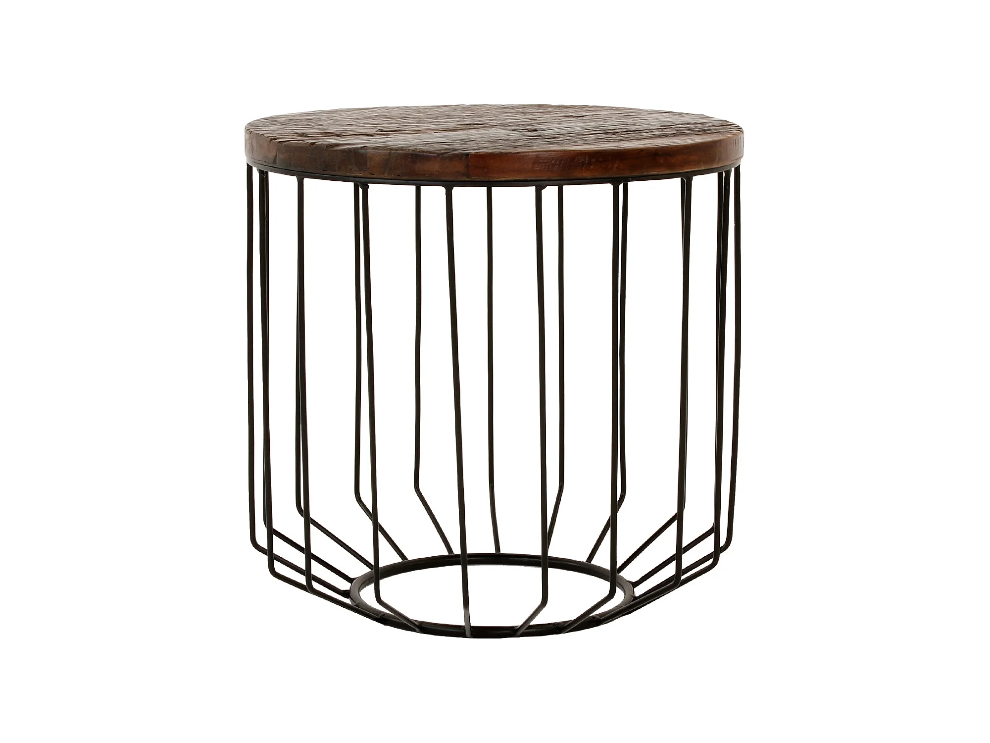 Sgabello basso contenitore portaoggetti in Tessuto bouclette e Metallo Nero Panna - EZEL
