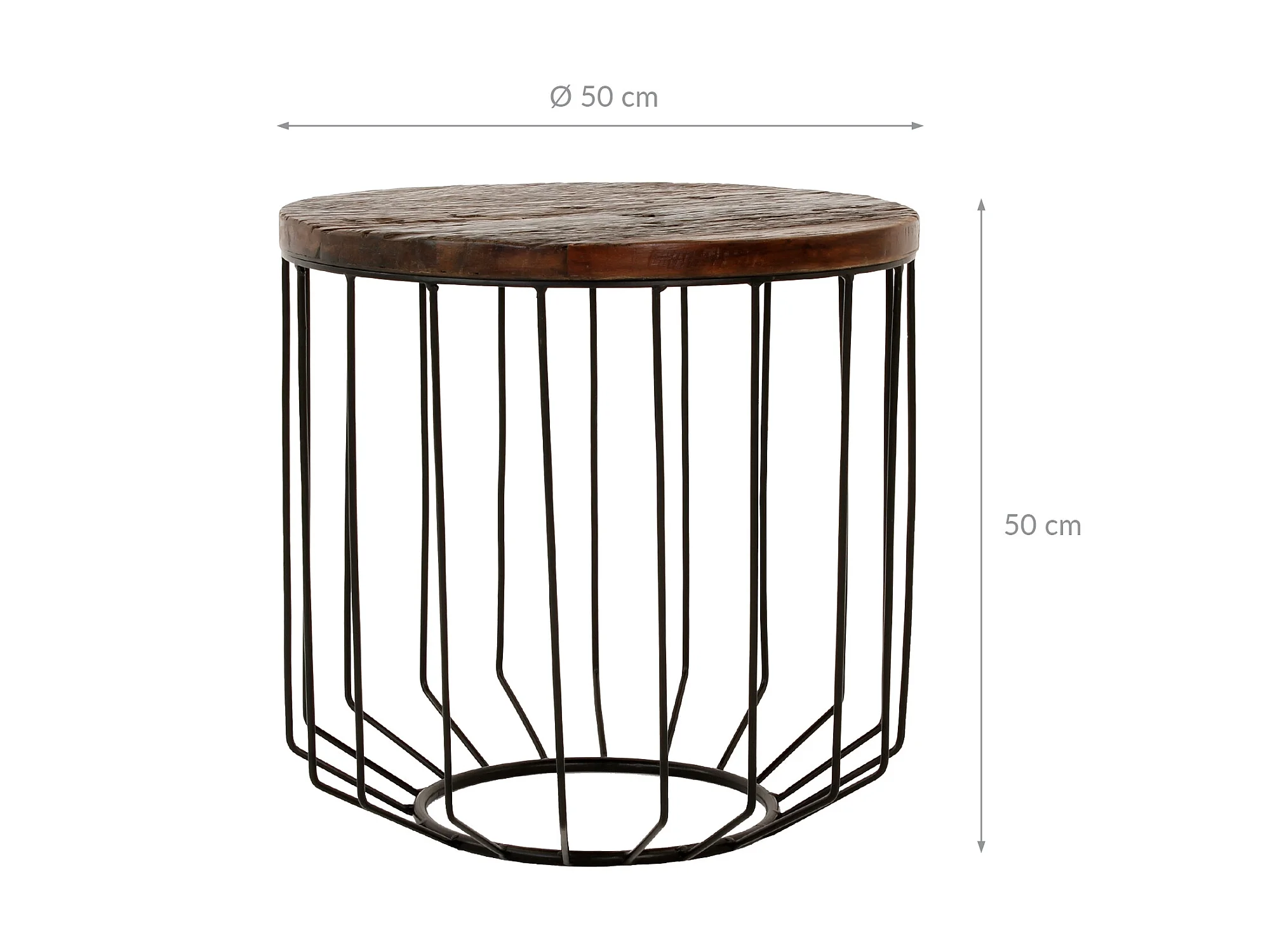 WOMO-DESIGN Tavolino rotondo in filo 50 x 50 cm naturale in legno massello con cestino tavolo da caffè con vano portaoggetti per soggiorno e salotto