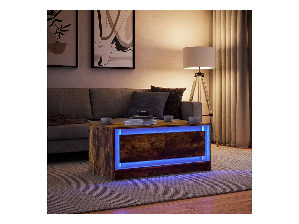 Tavolino da Salotto con Luci LED Rovere Fumo in Truciolato