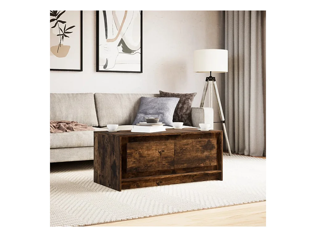 Tavolino Rovere Fumo 100x50x45cm in Legno Multistrato e Metallo