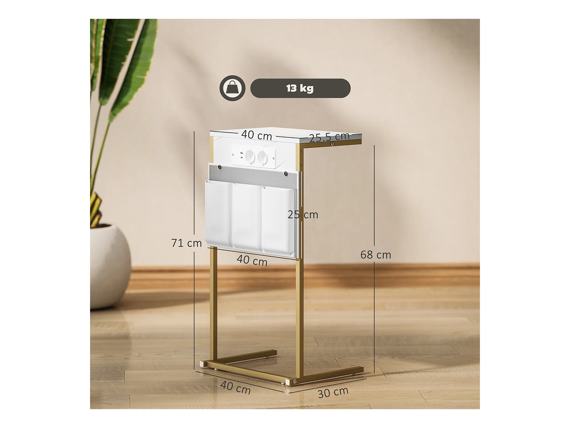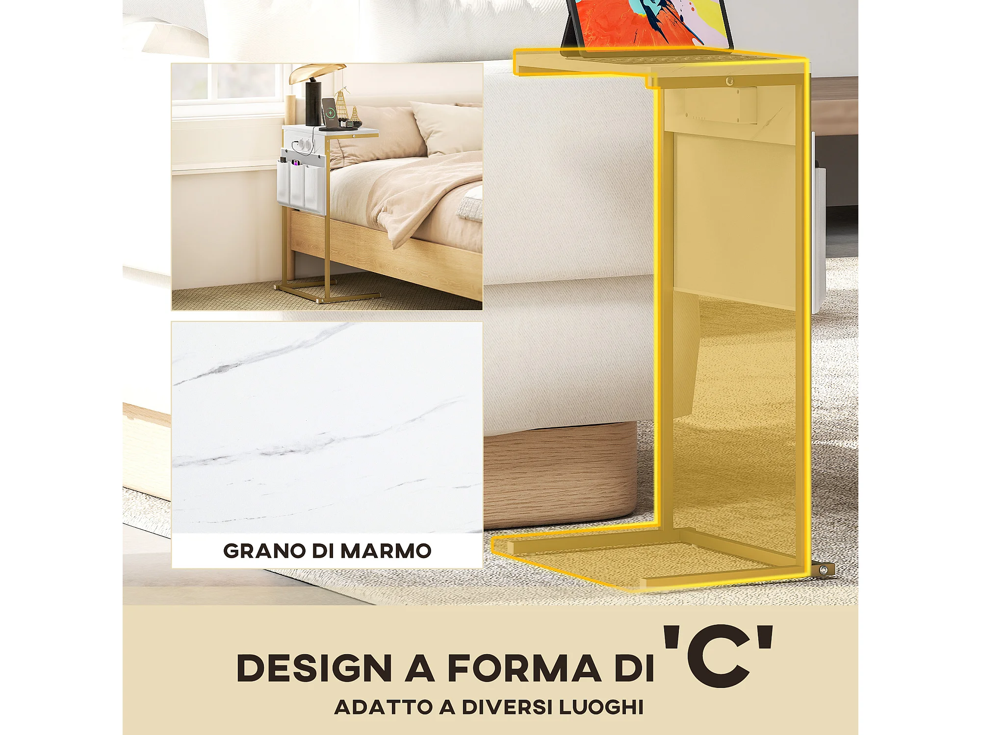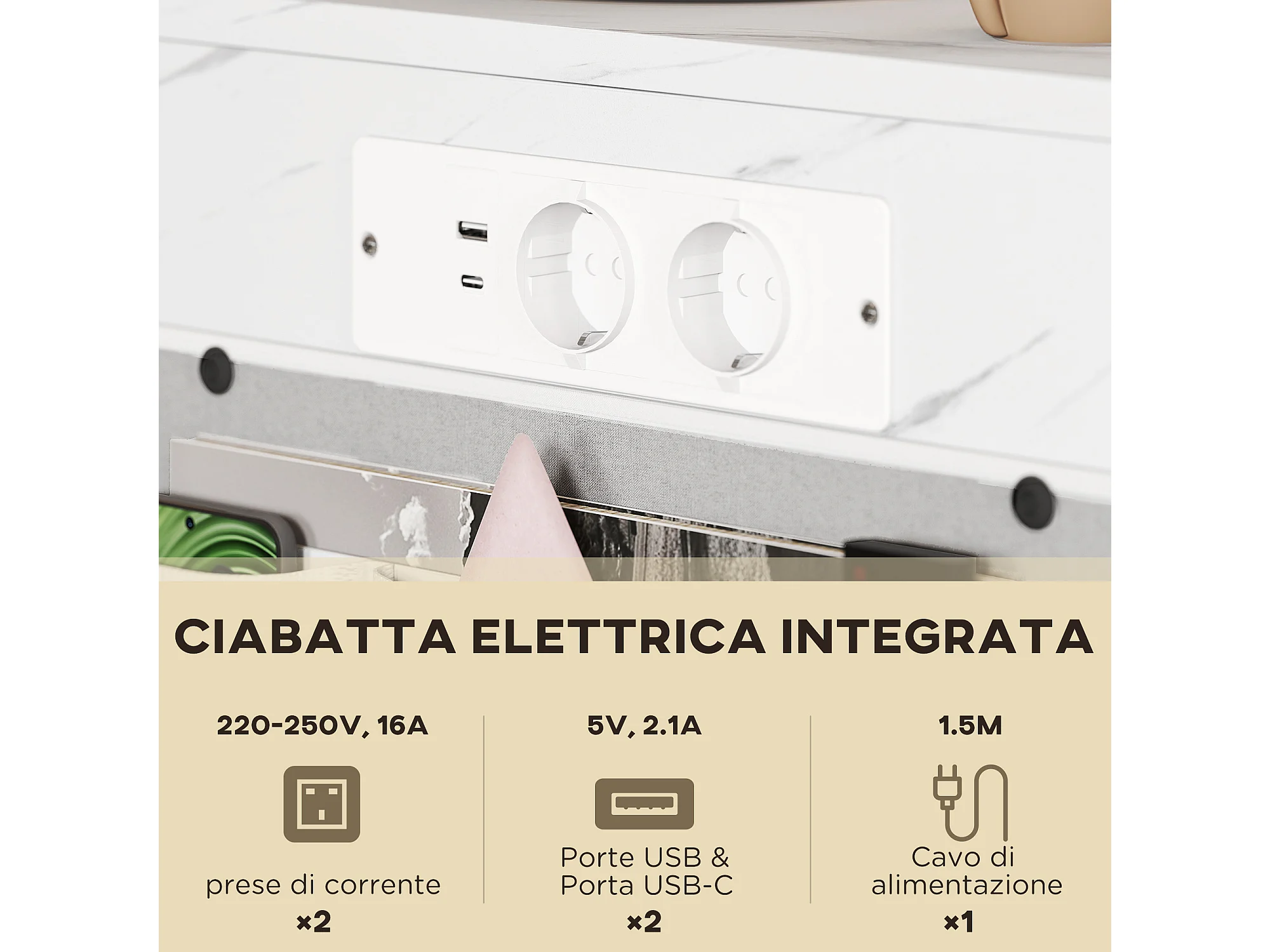 Tavolino da salotto con prese di corrente e usb effetto marmo bianco