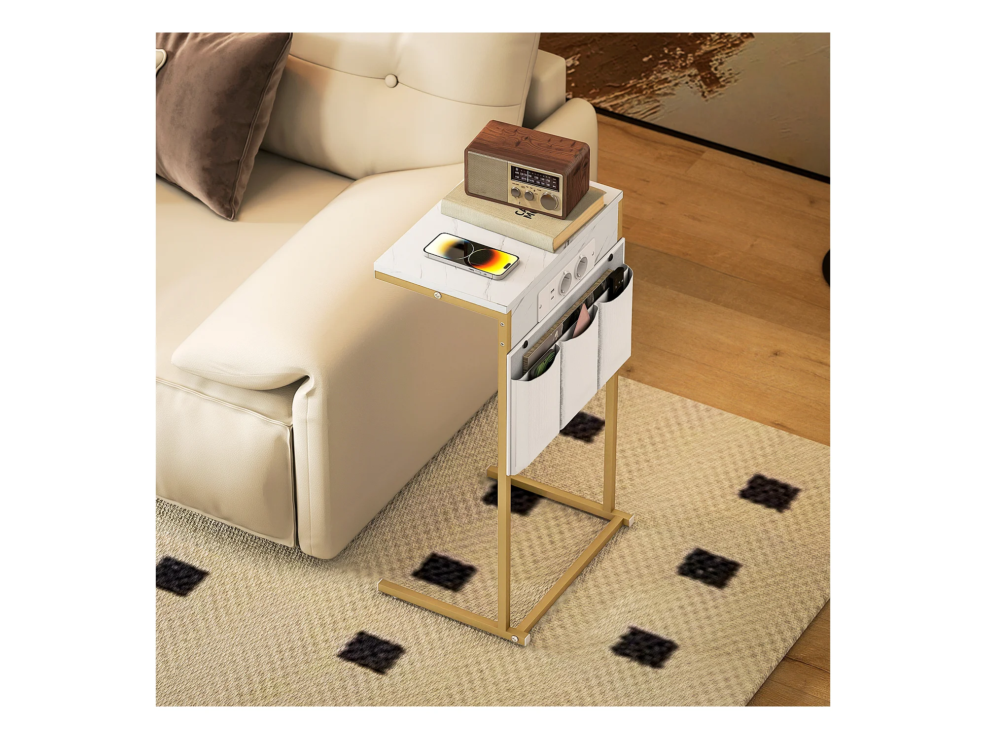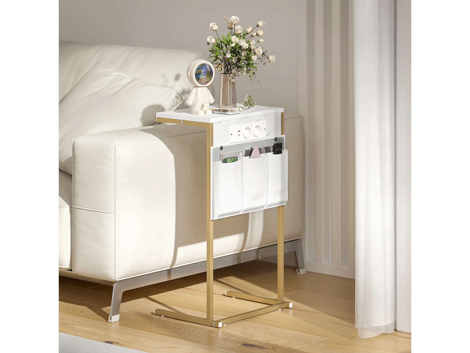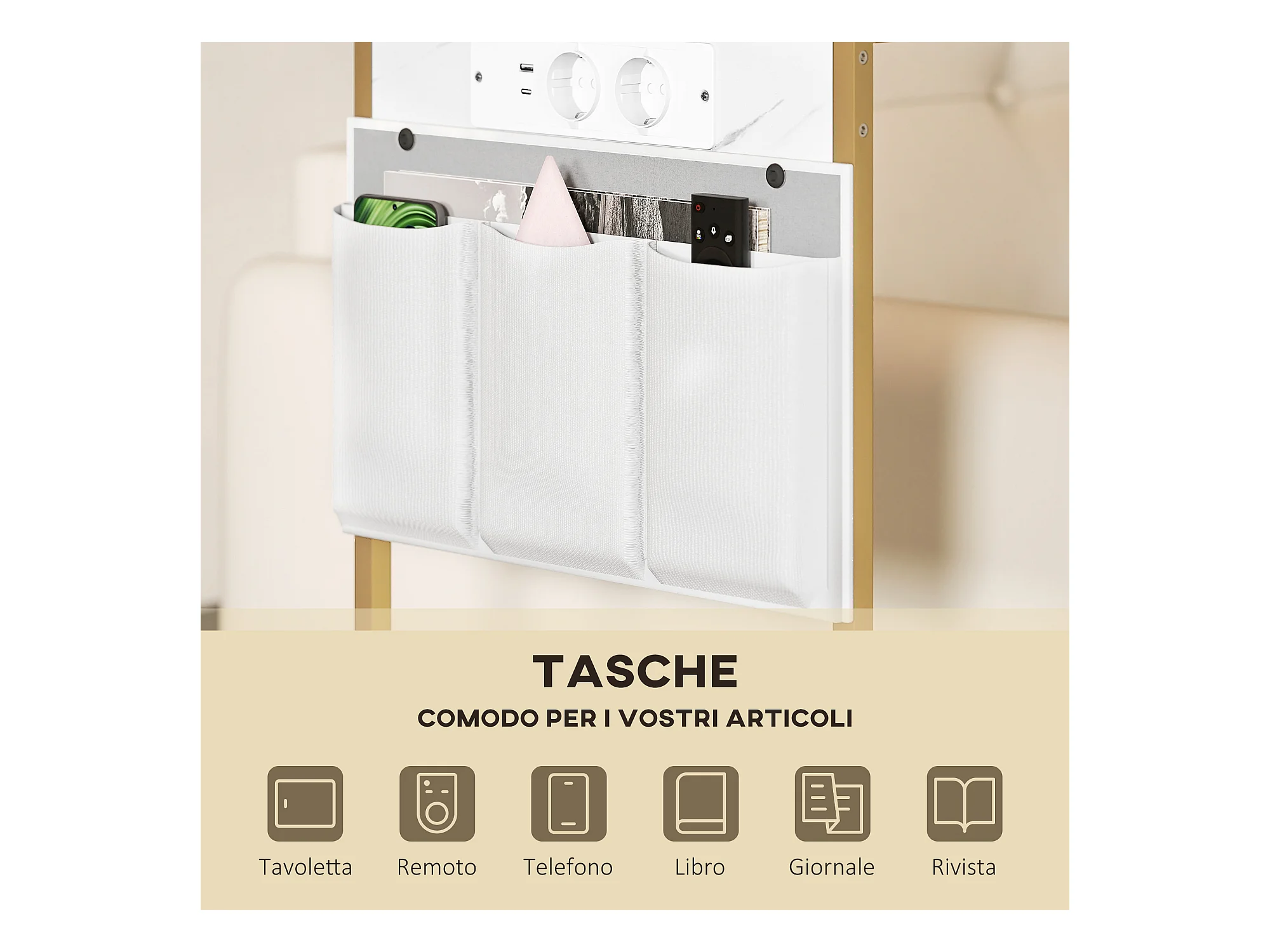 Tavolino da salotto con prese di corrente e usb effetto marmo bianco