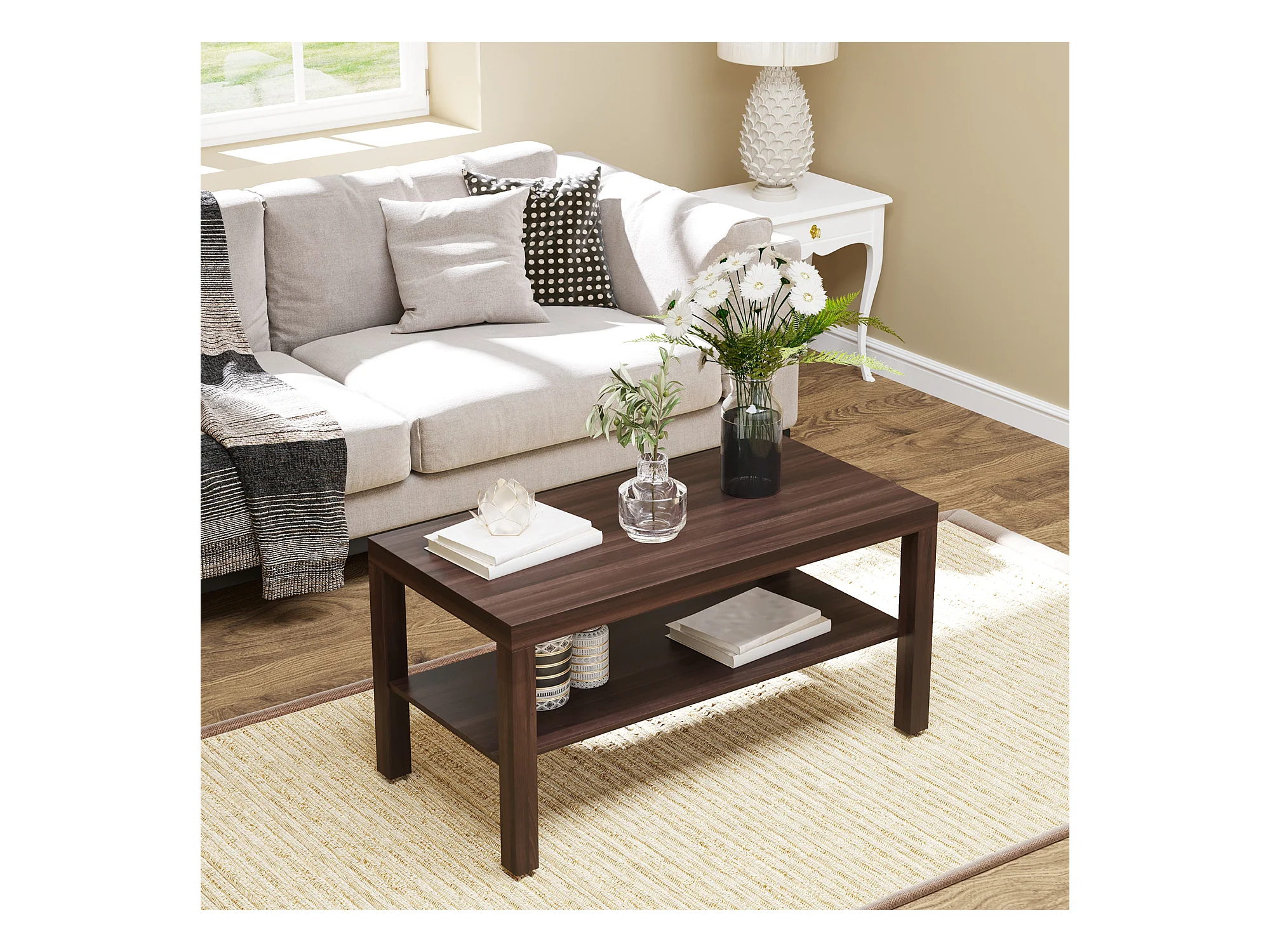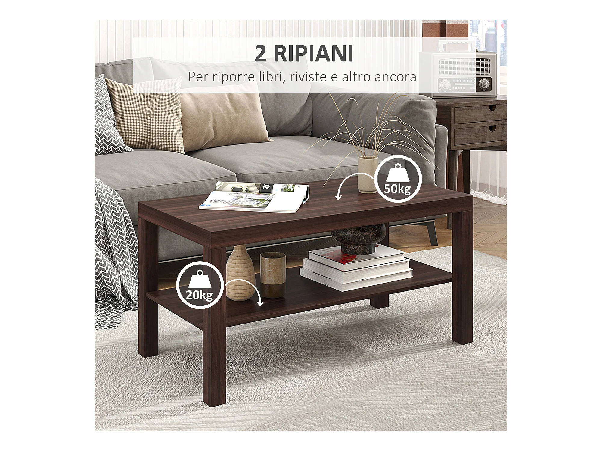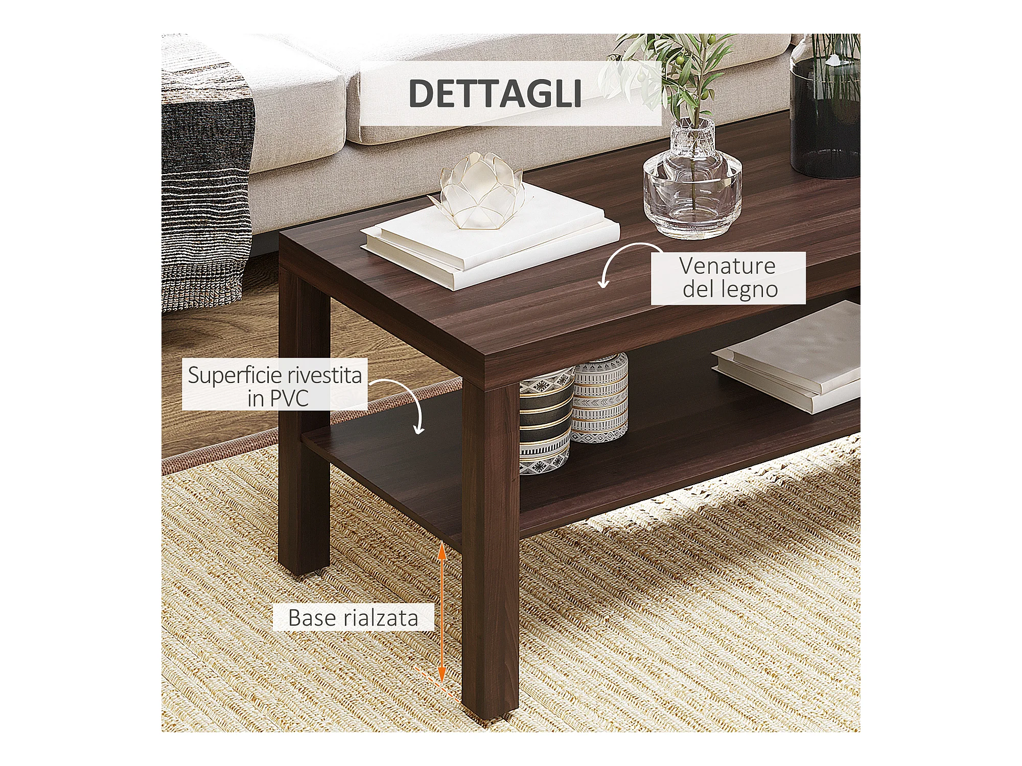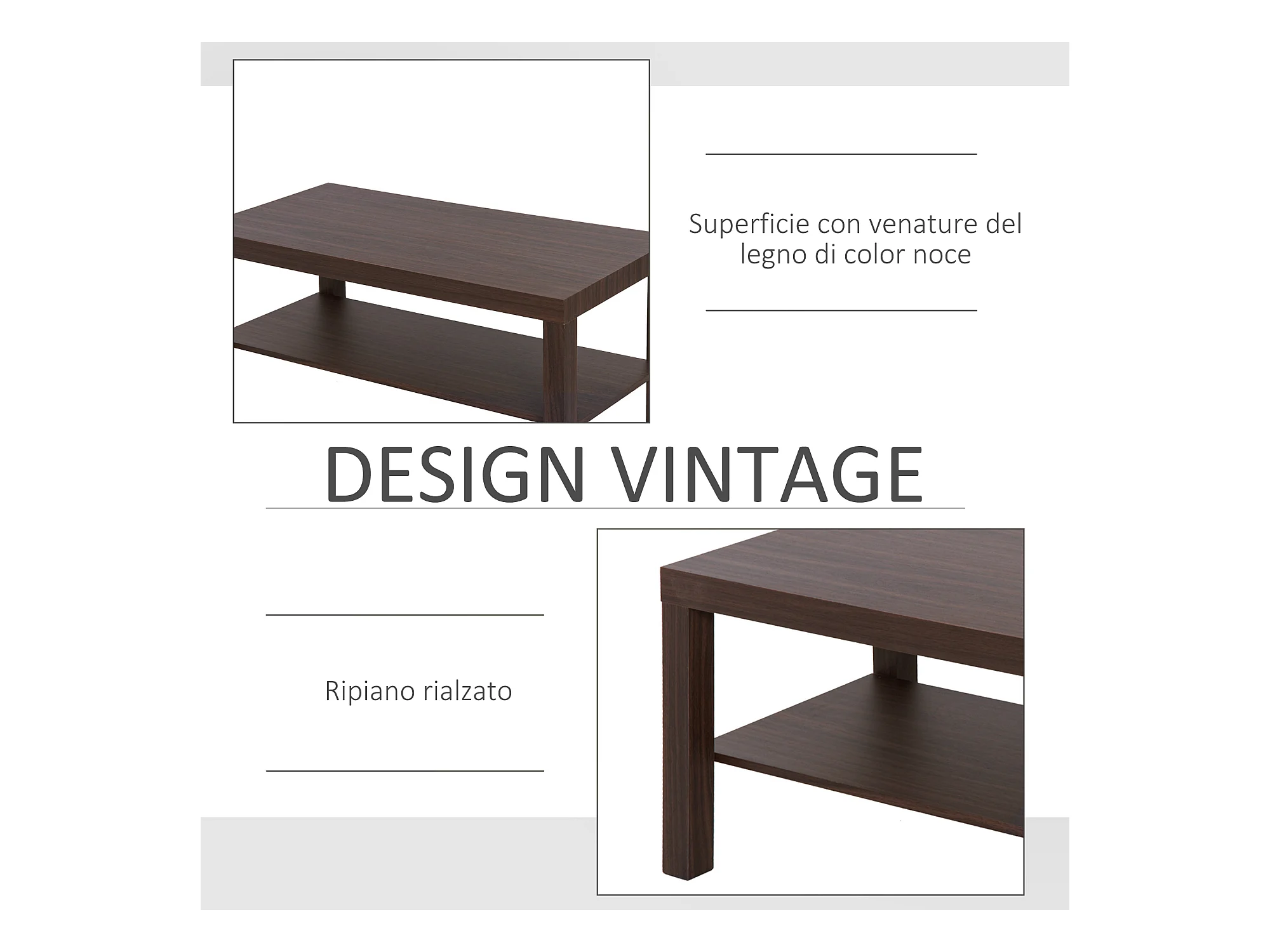 Tavolino da divano cassetto 2 ripiani stile industriale nero marrone