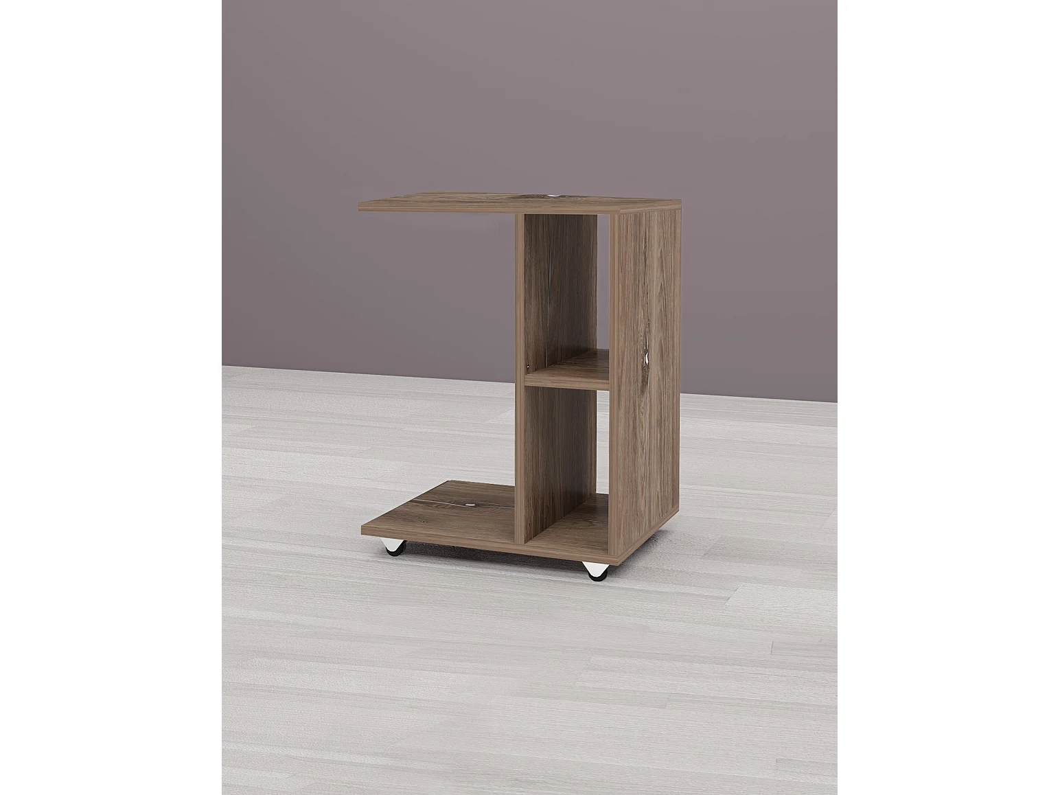 Tavolino da salotto con ruote e 2 vani a giorno in marrone TG9