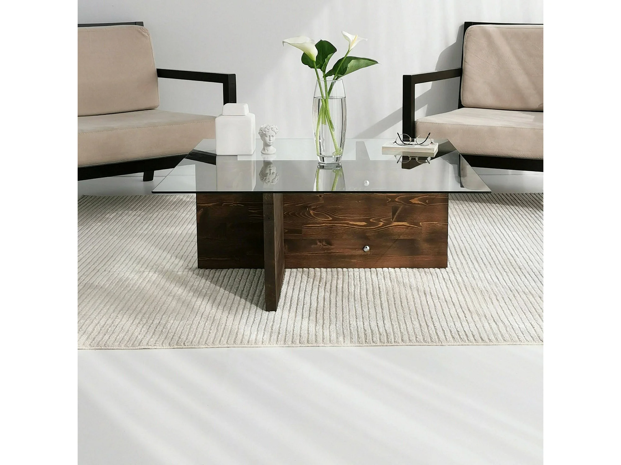 Tavolino da Salotto Dhabi, Portariviste, 90x90x35h cm Marrone Noce