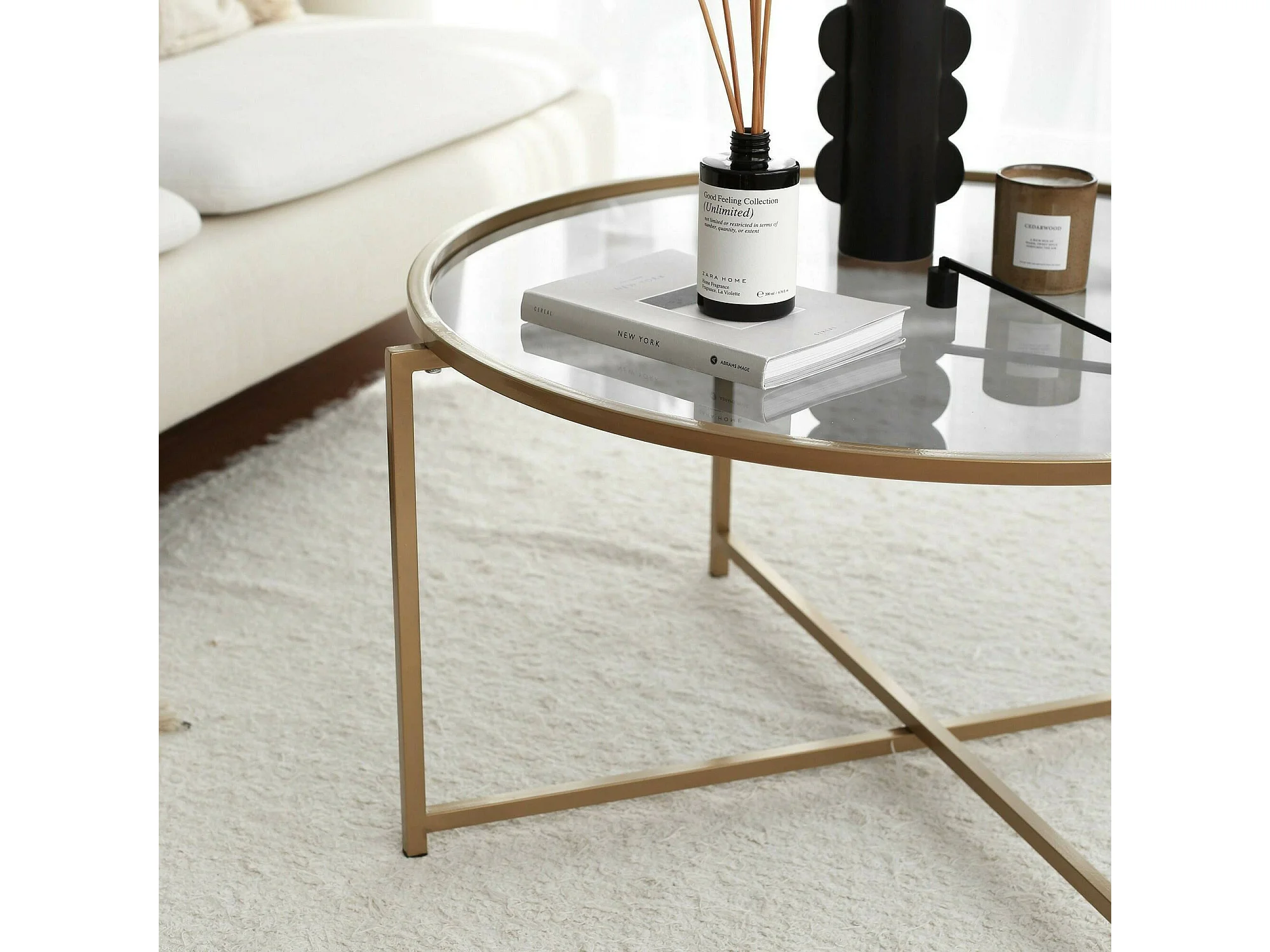 Dmora - Tavolino da salotto Ecaterina, 83x83h40 cm, Oro e Tortora