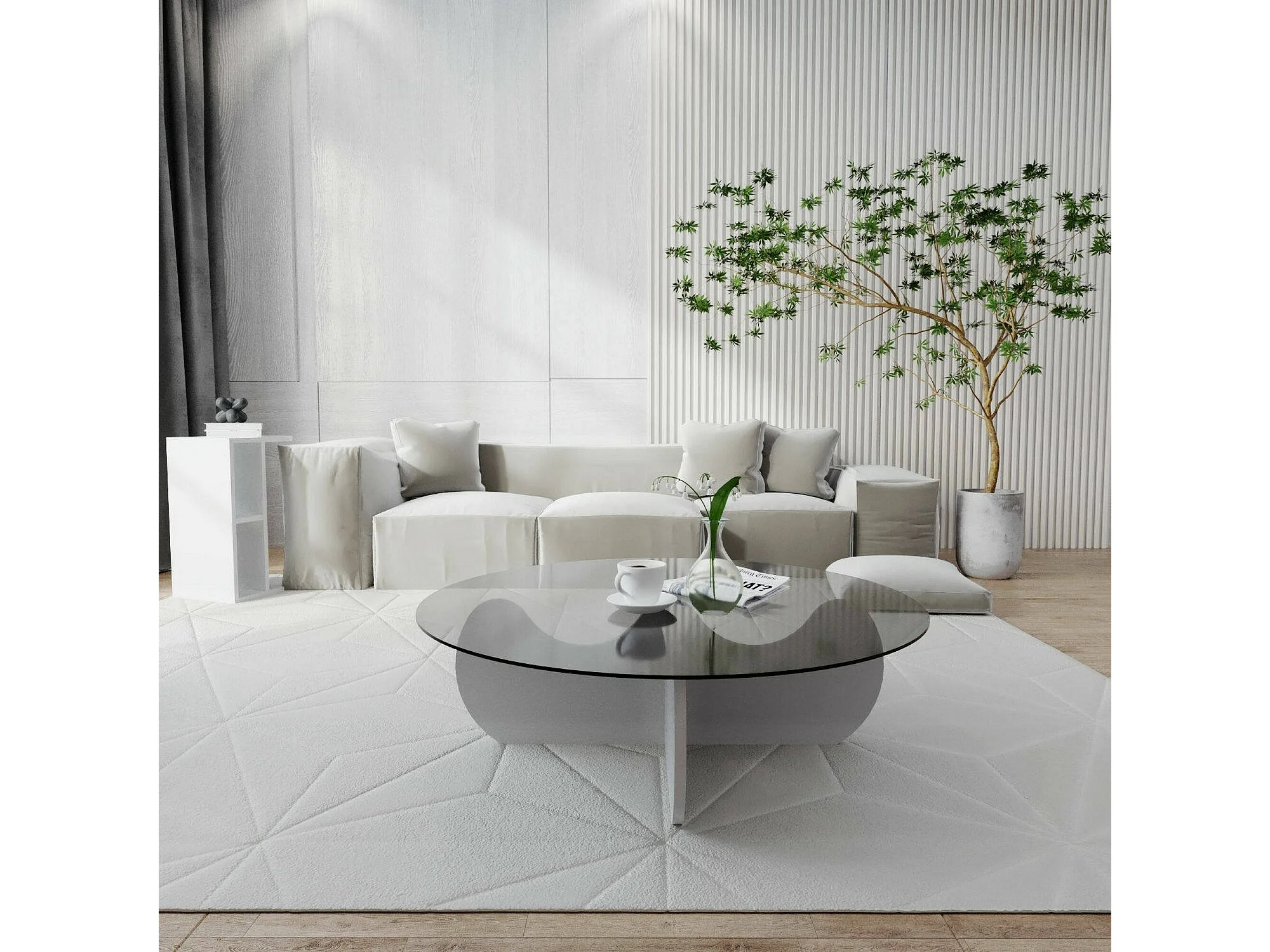 Tavolino da Salotto Willow, Effetto Fumè, 90x90x30h cm Bianco