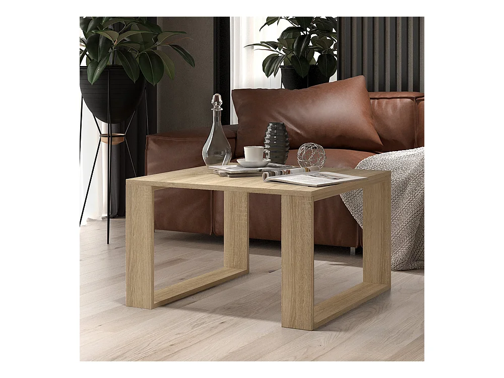 Elegante tavolino da caffè in legno - 79 x 79 x 46 cm - design moderno - MDF + truciolato - naturale