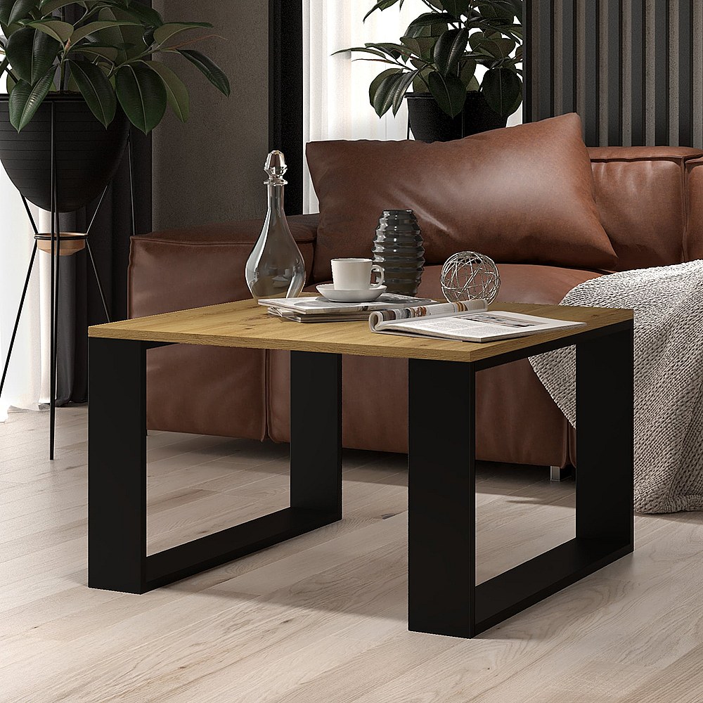 Tavolino da salotto essenziale 67x67x40 cm rovere e nero TST6