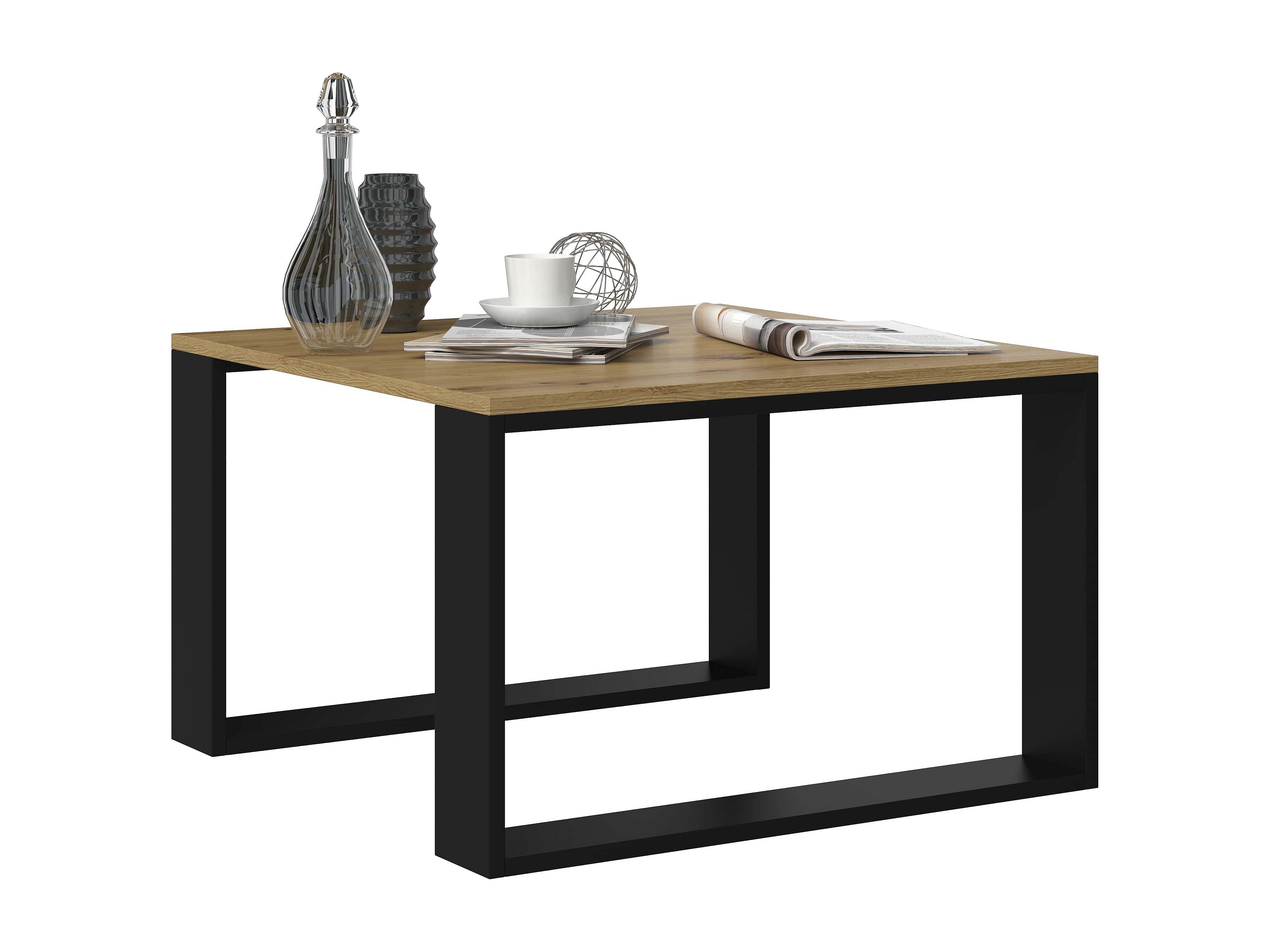 Tavolino da salotto essenziale 67x67x40 cm rovere chiaro e nero TST6