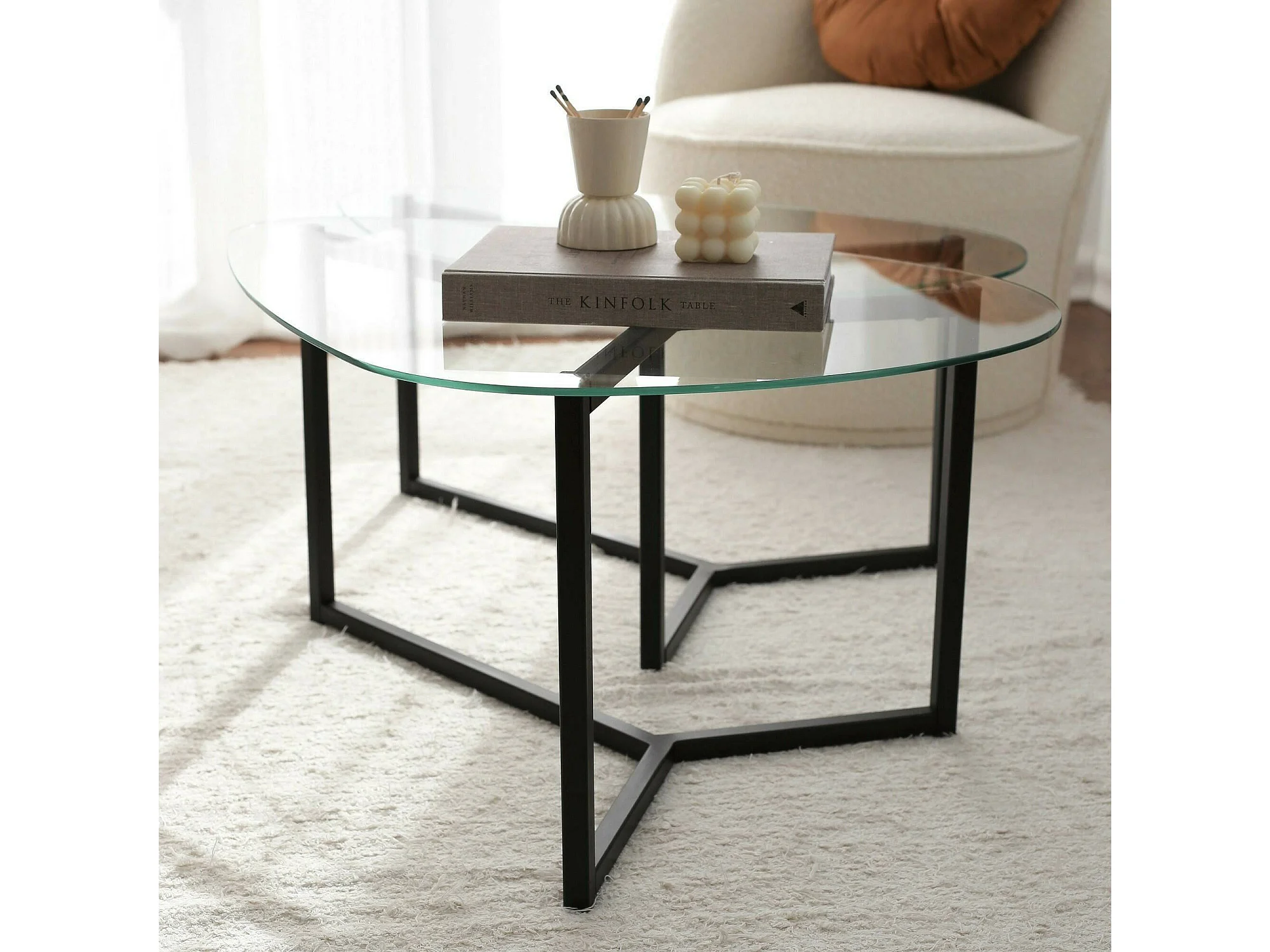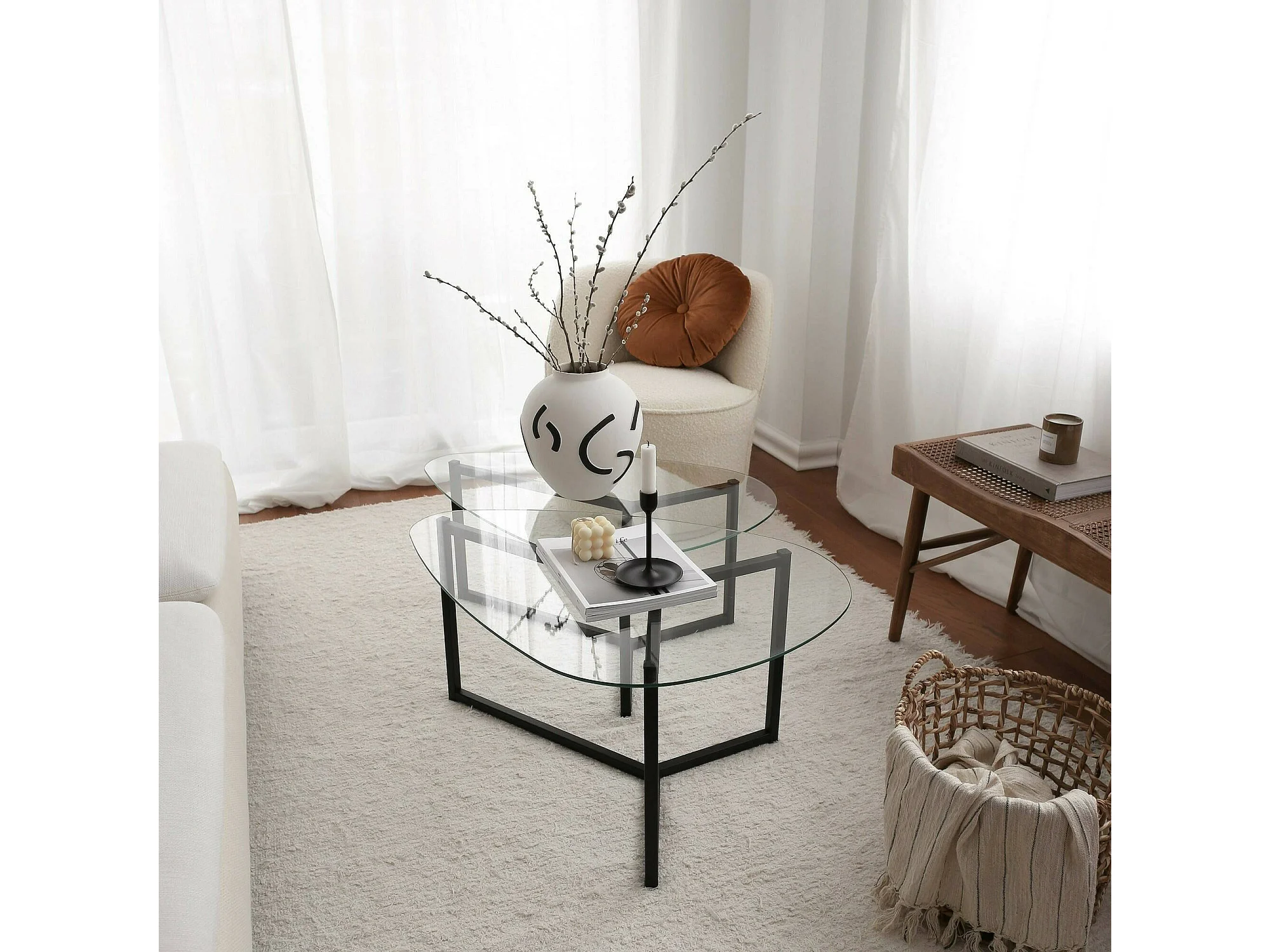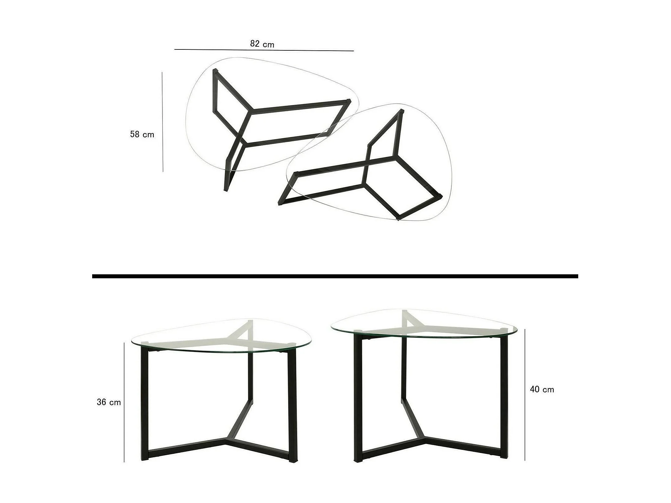 Tavolino da Salotto Flora, Modulare Multifunzionale, 58x82x40h cm Nero