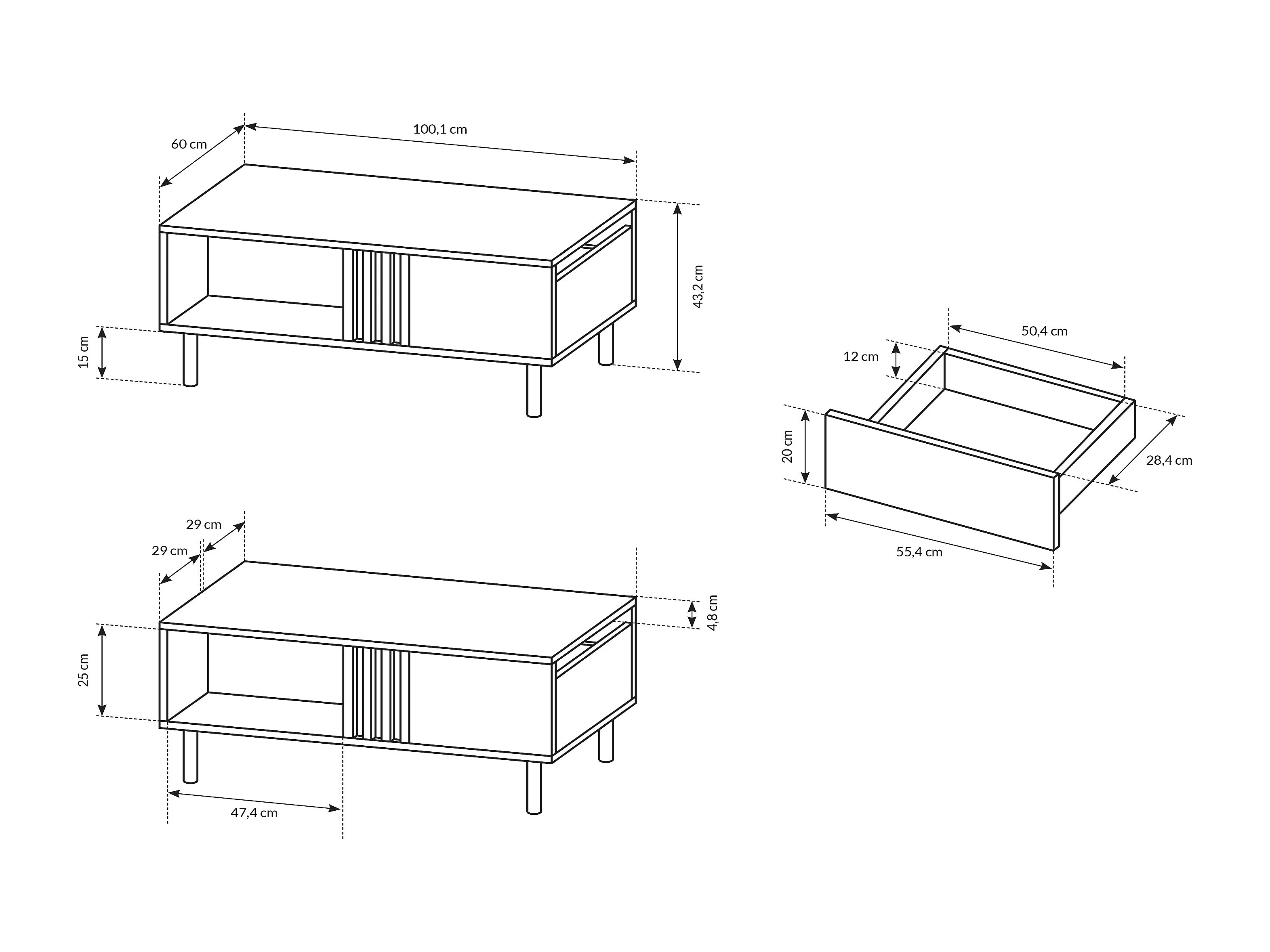 Tavolino da salotto moderno 100x43cm rovere e nero TLK8