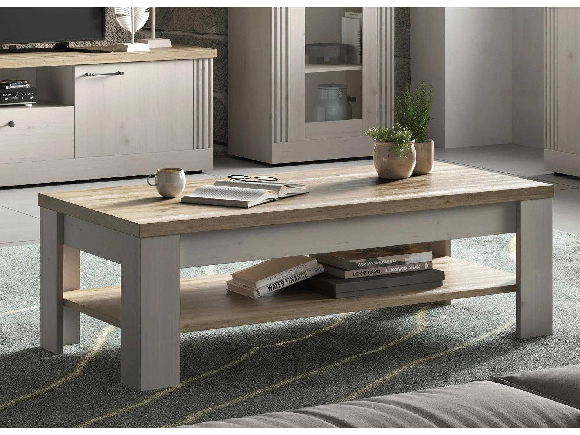 Tavolino da salotto moderno 110x68 cm bianco effetto legno e rovere TSL11