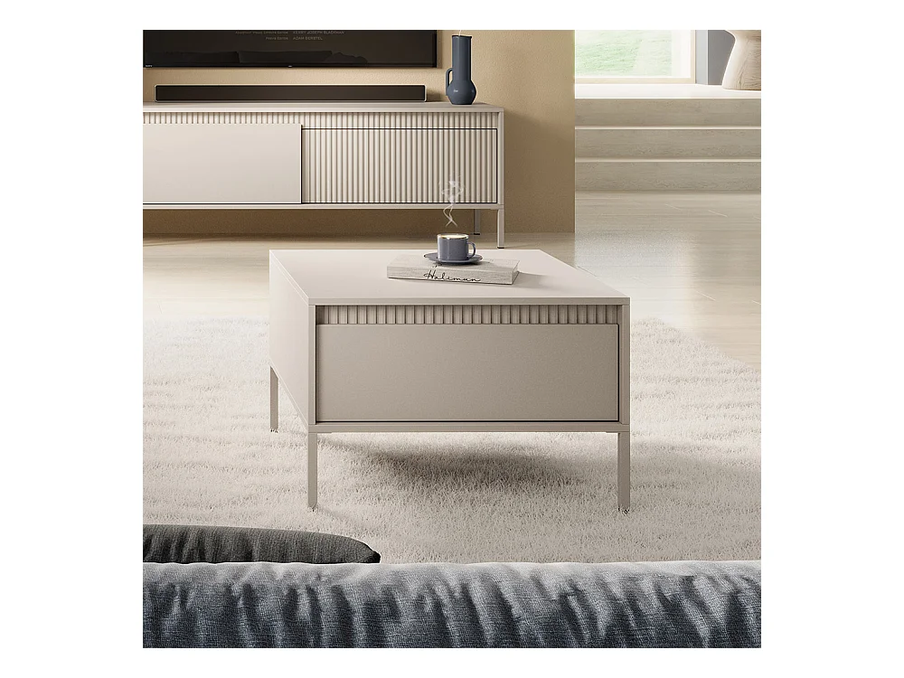 Tavolino da salotto moderno 68x48cm con cassetto beige TLK11
