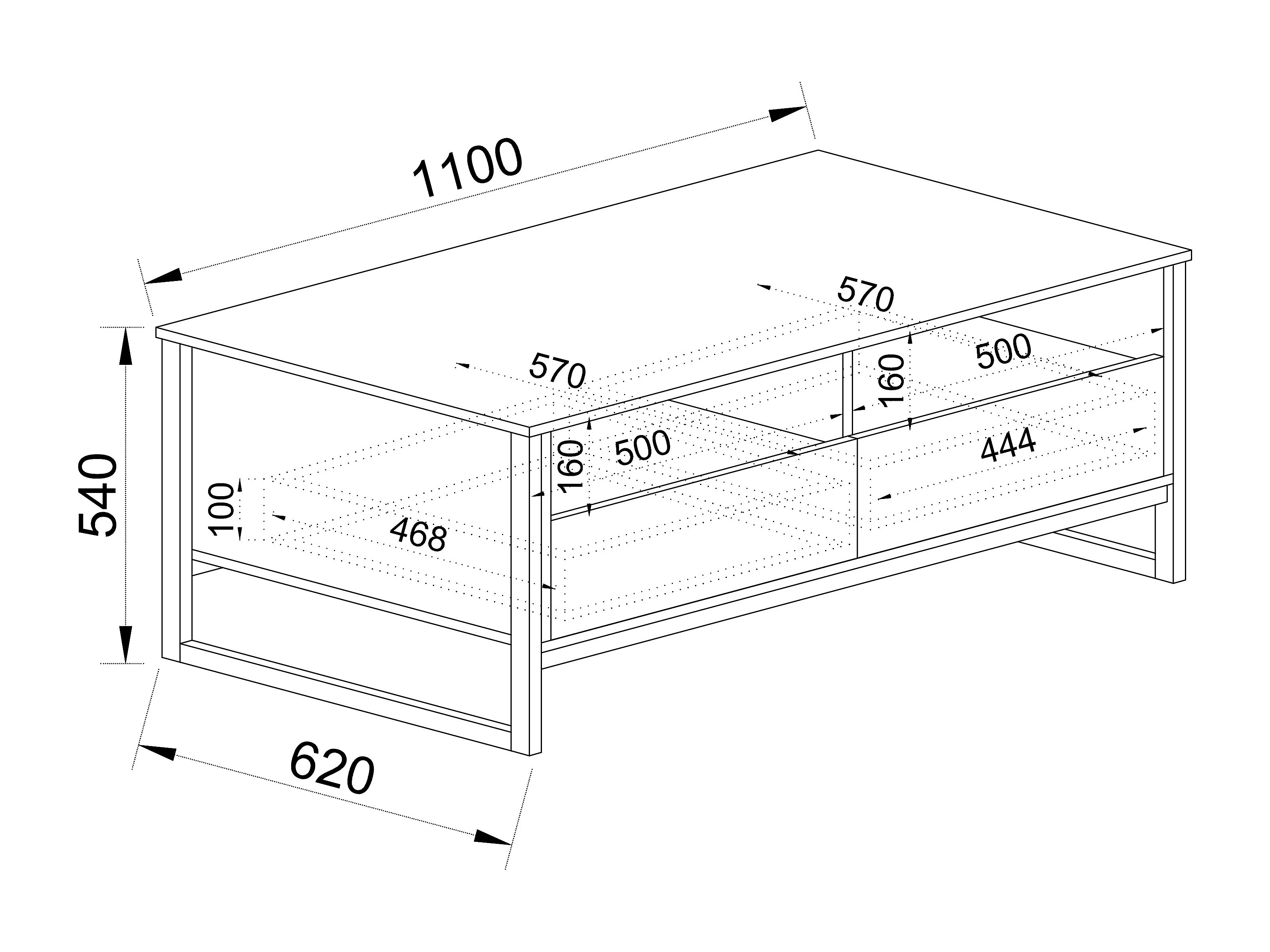 Tavolino da salotto moderno con ripiano TI6215 100x40 nero e bianco