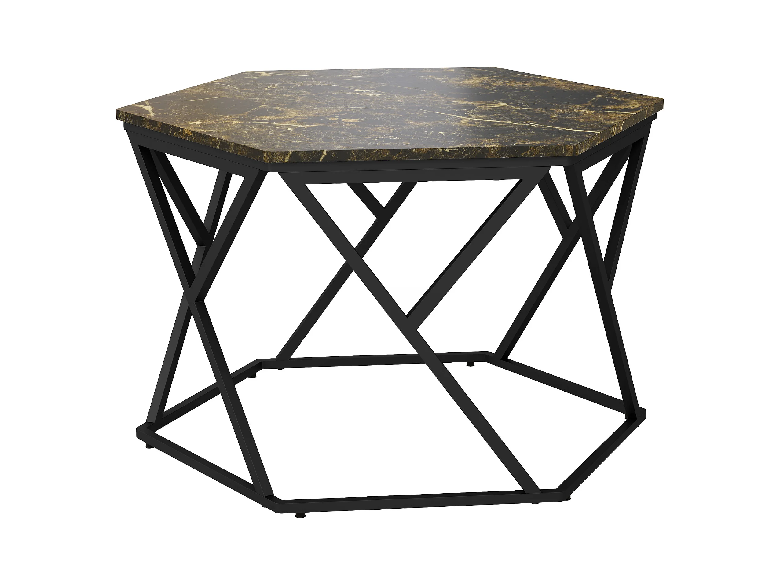 Tavolino da salotto moderno effetto marmo in mdf e acciaio nero