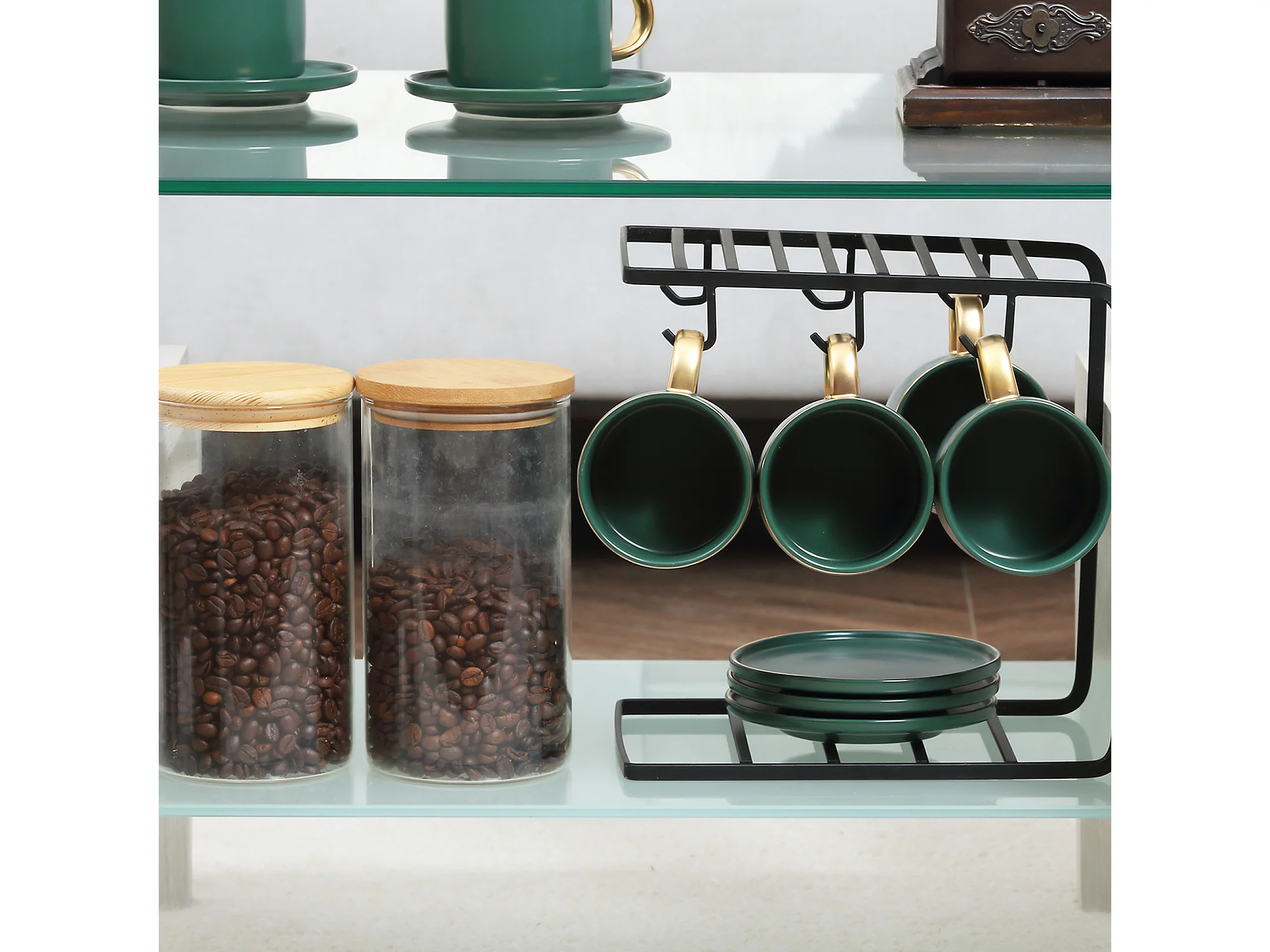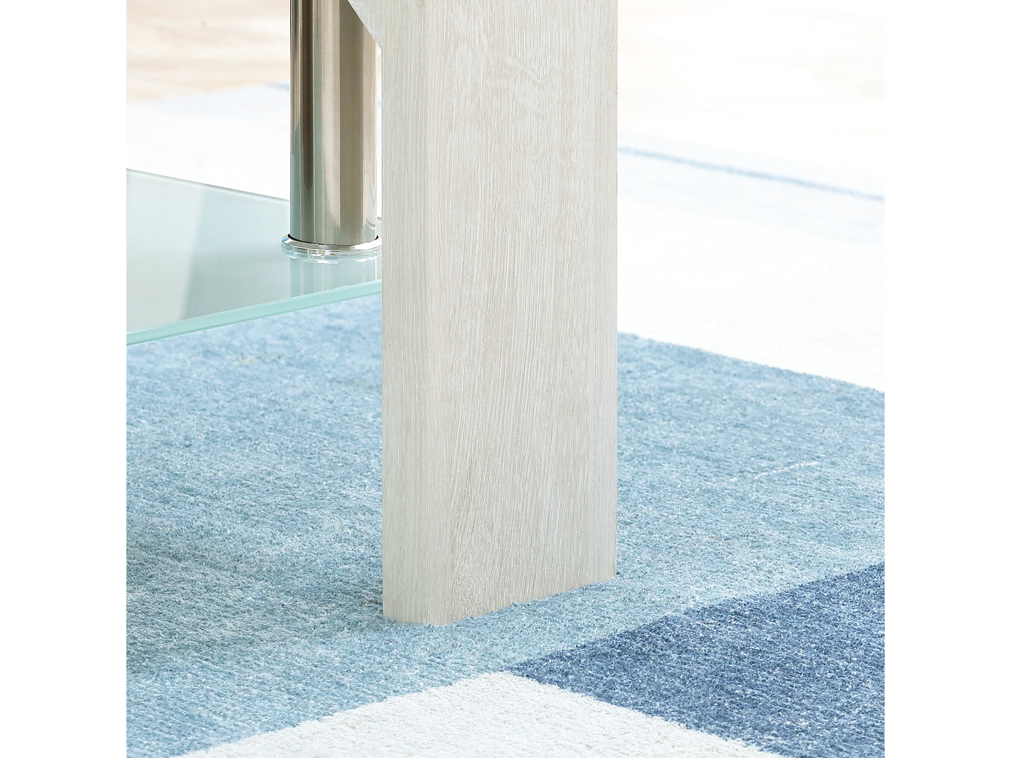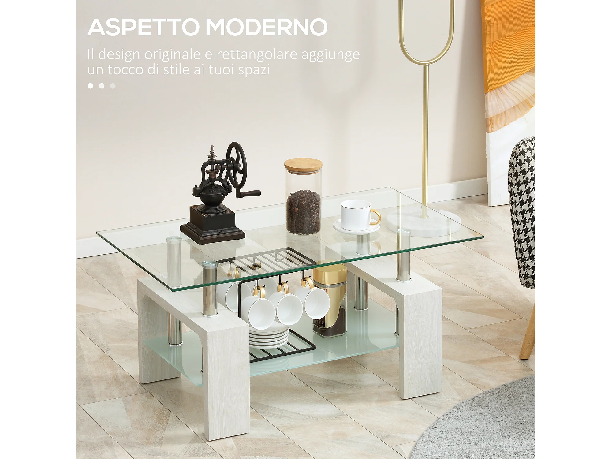 Tavolino da salotto moderno in vetro e legno bianco a 2 livelli