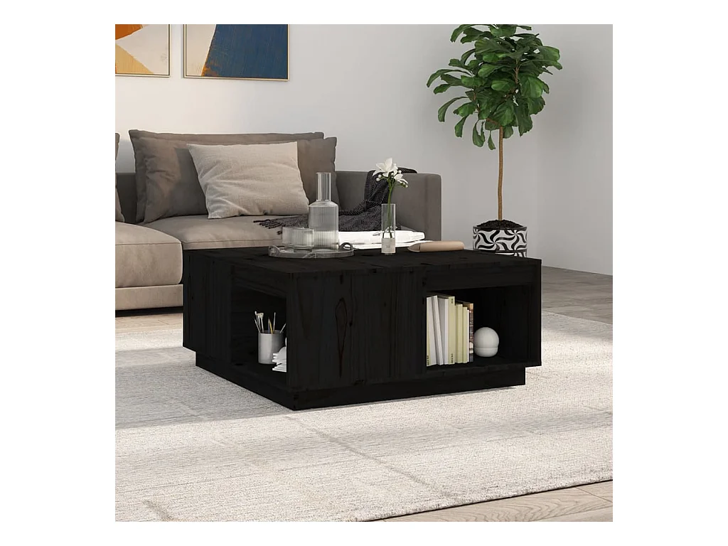 Tavolino da Salotto Nero 80x80x45 cm Legno Massello di Pino