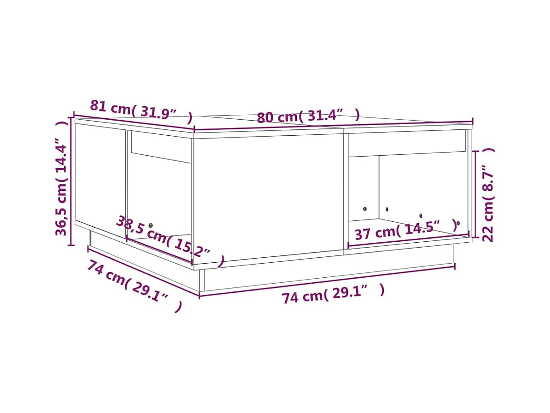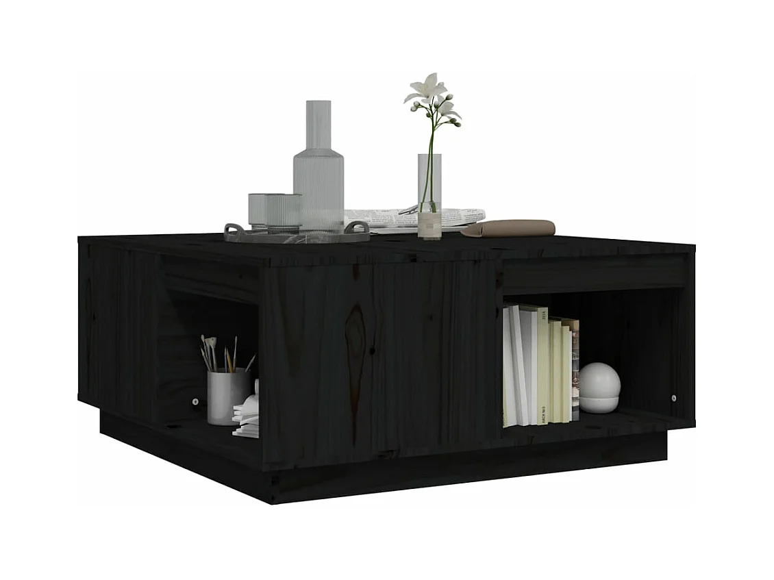 Tavolino da Salotto Nero 80x81x36,5 cm Legno Massello di Pino