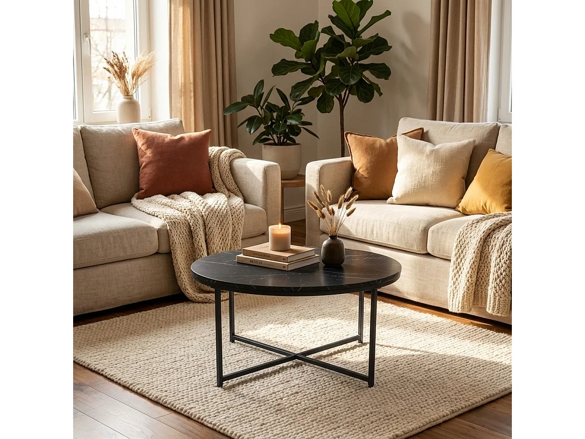 Tavolino da salotto rotondo 80cm in metallo e piano effetto marmo Sulley - Nero