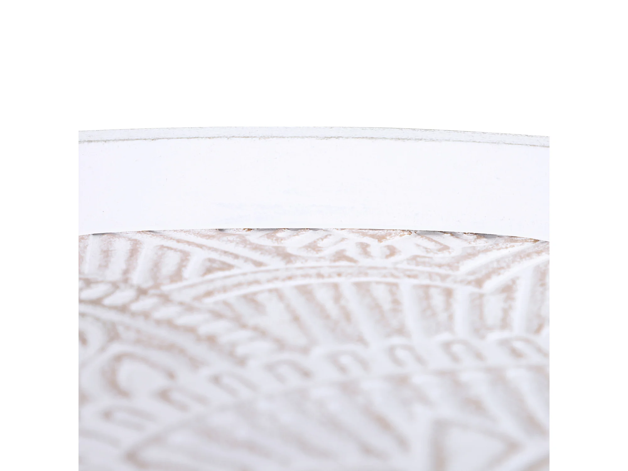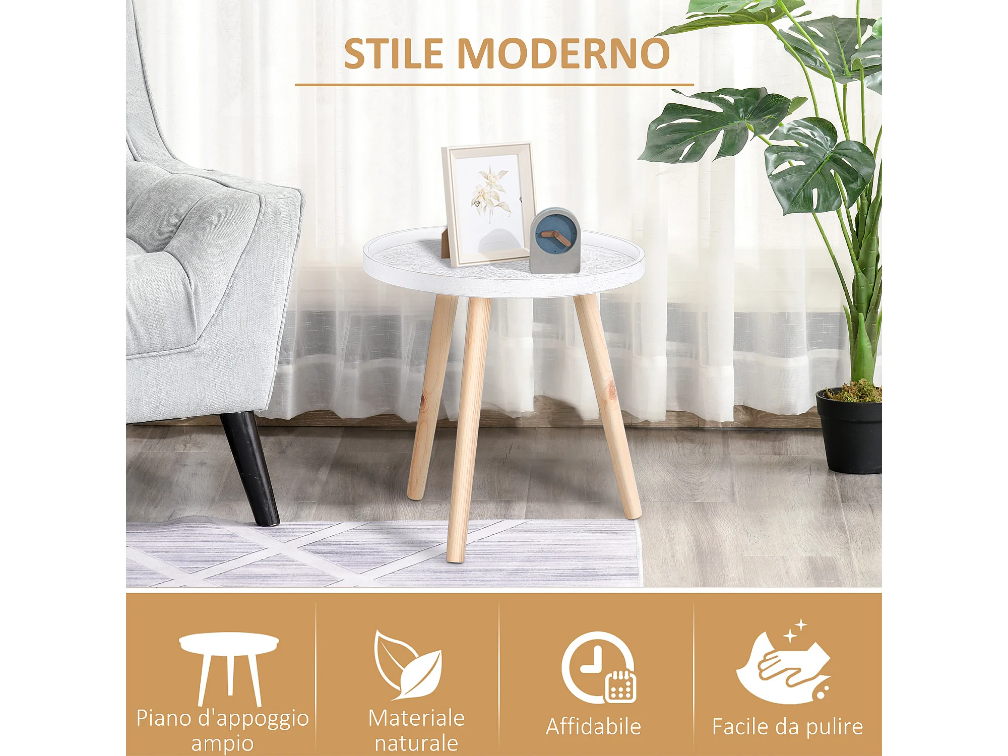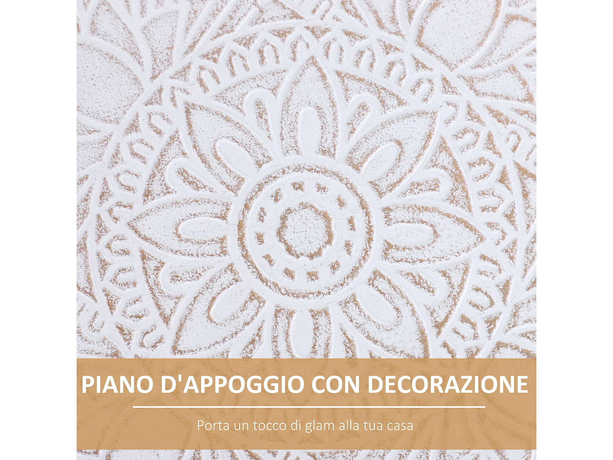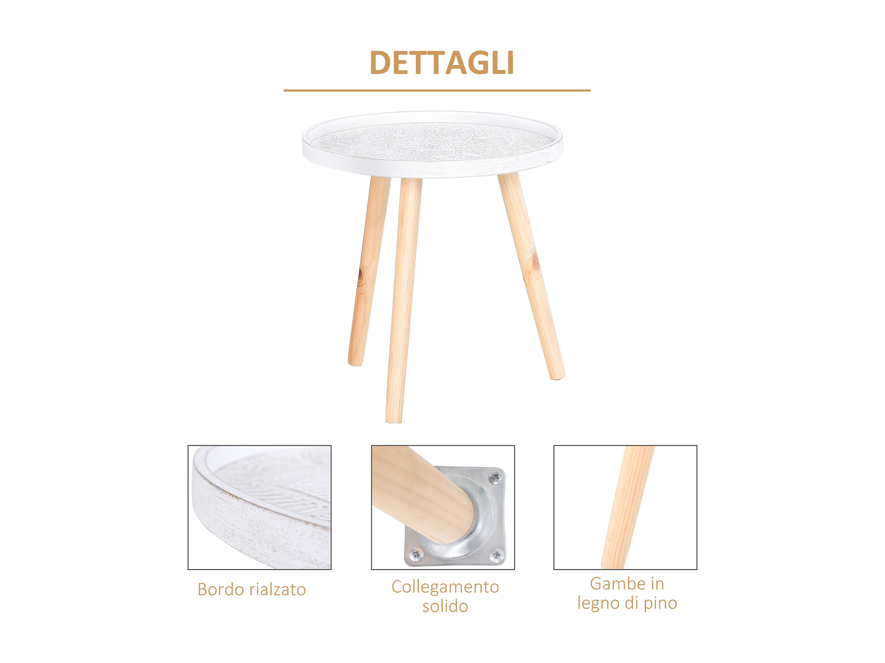 Tavolino da salotto rotondo bordo rialzato in legno bianco oro