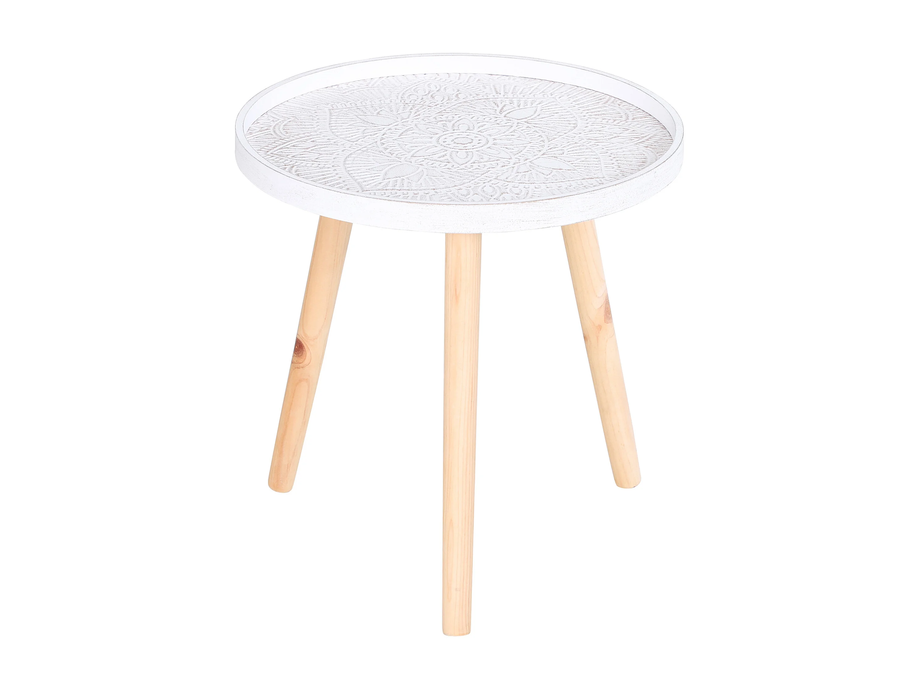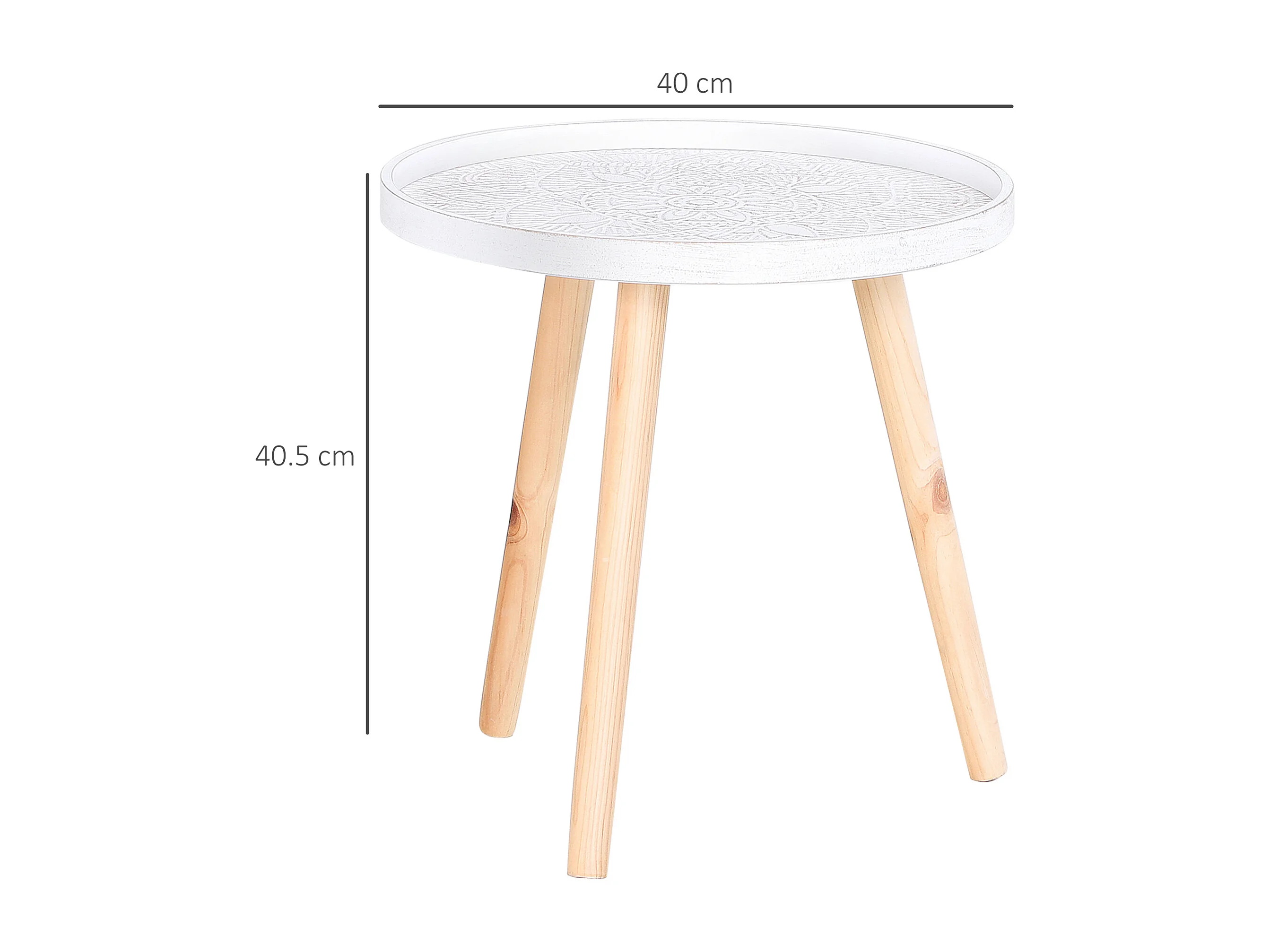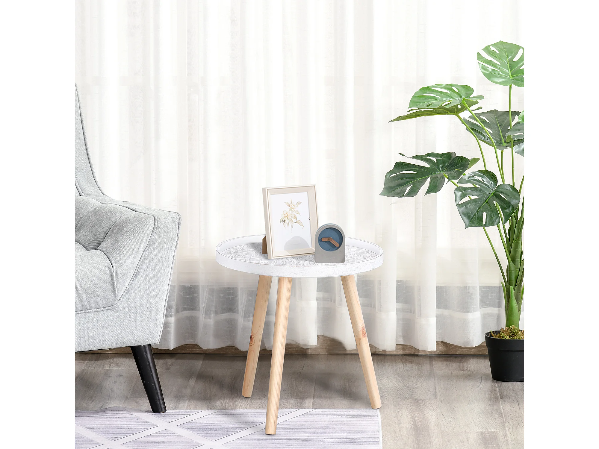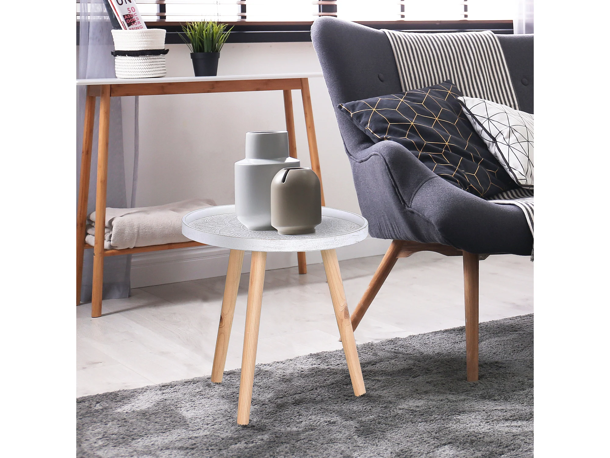 Tavolino da salotto rotondo bordo rialzato in legno bianco oro