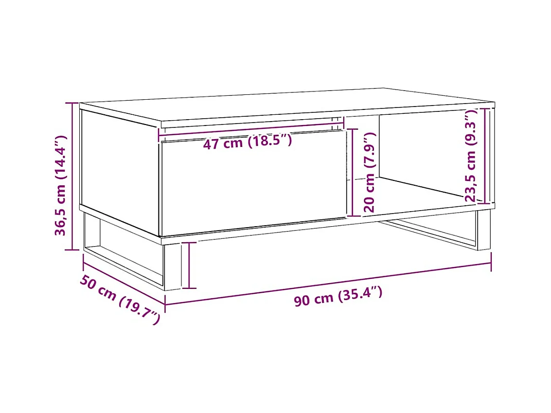 Tavolino da Salotto Rovere Artigianale 90x50x36,5 cm Truciolato
