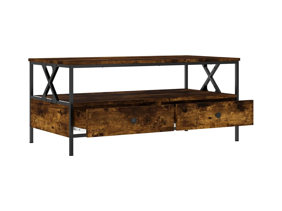 Tavolino Rovere Fumo 100x50x45cm in Legno Multistrato e Metallo