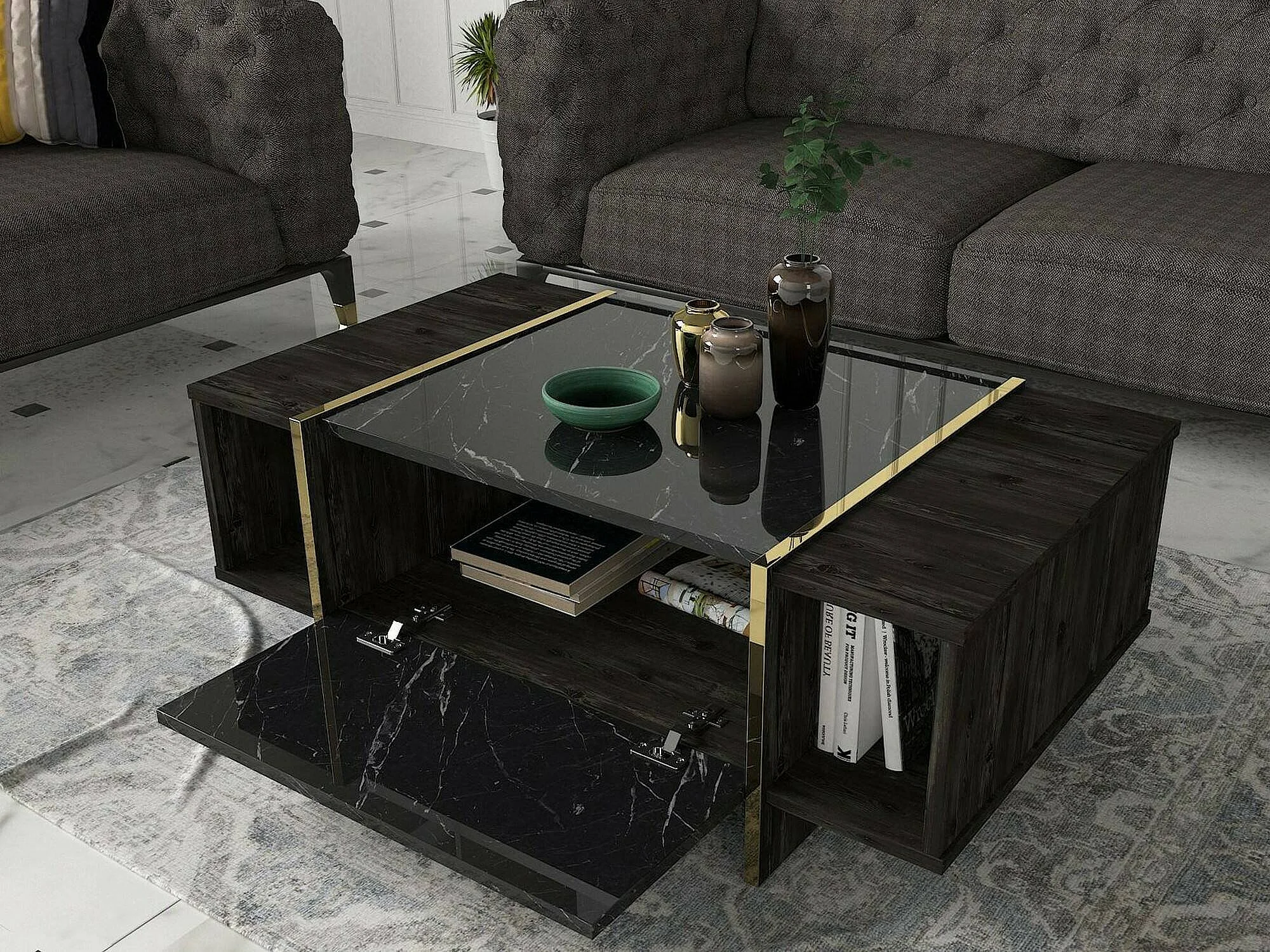 Tavolino da Salotto Salvador, Effetto Lucido, 60x103.8x37.3h cm Nero