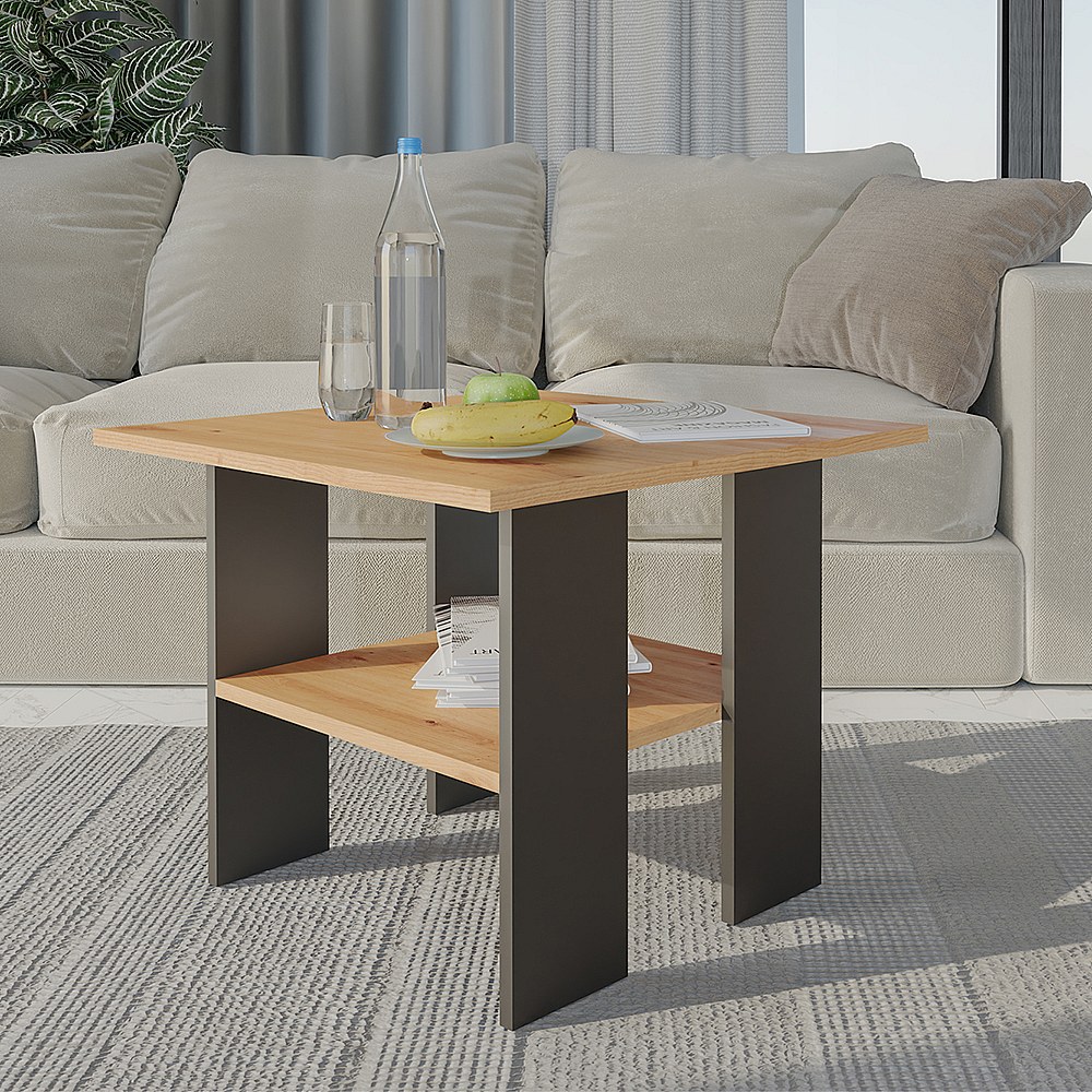 Tavolino da salotto essenziale 67x67x40 cm rovere chiaro e nero TST6