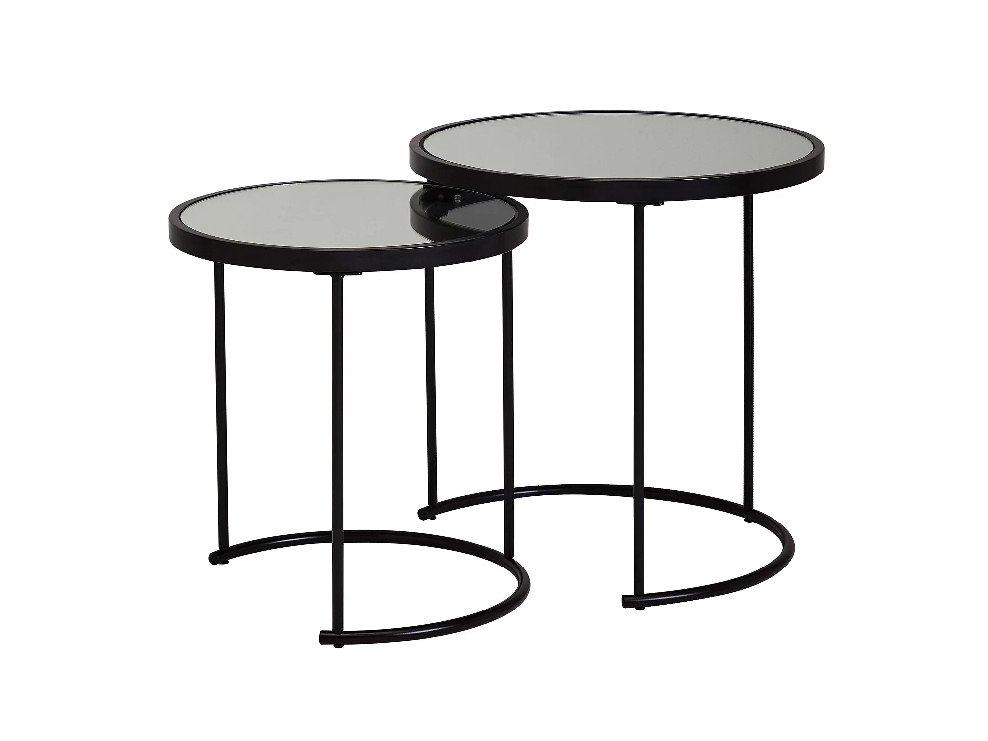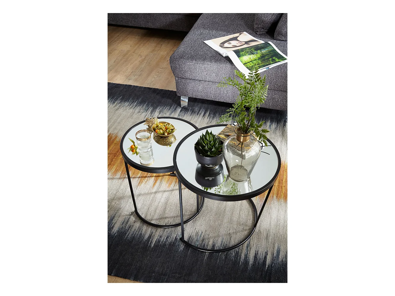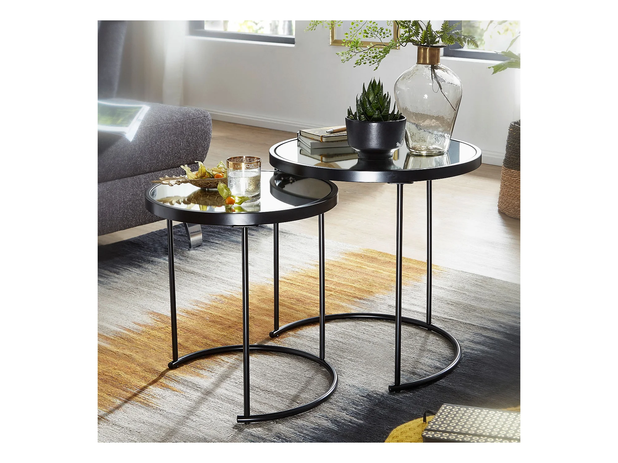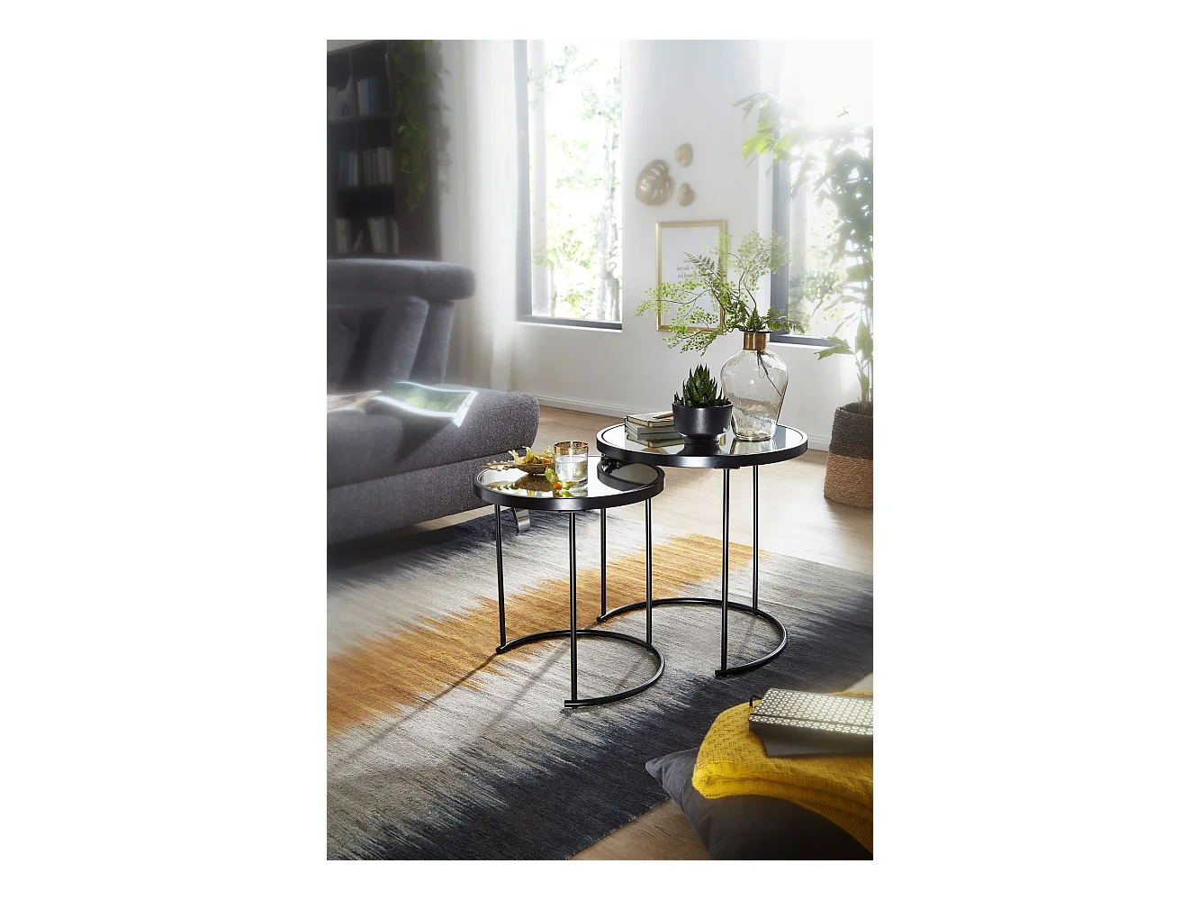 TAVOLINO ROTONDO SET DI 2 TAVOLINI NERI MODERNI LOFT SALOTTO