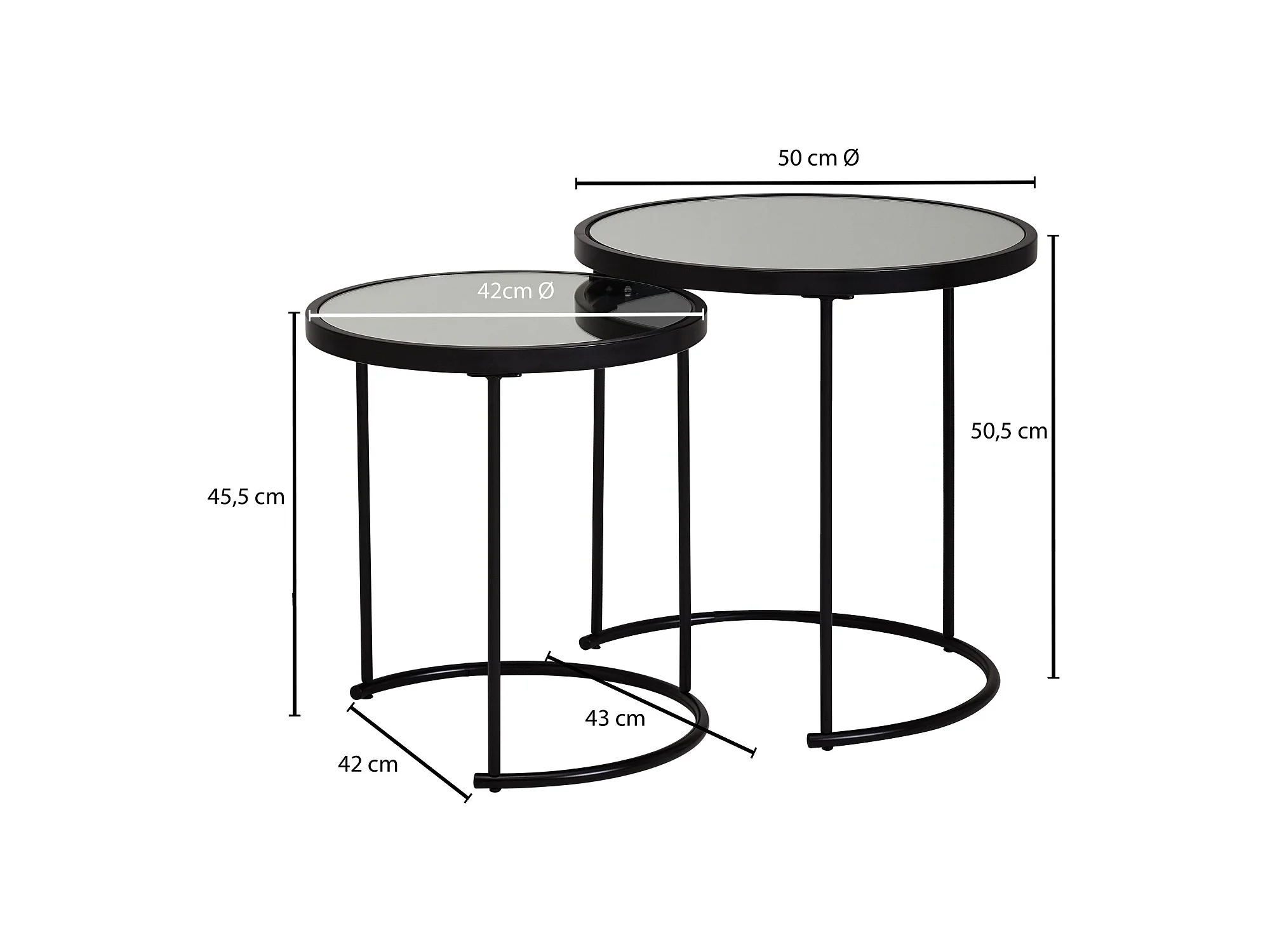 Set di 2 Tavolini da caffè salotto impilabili in MDF nero Ø74 x 48 / Ø59 x 40 cm