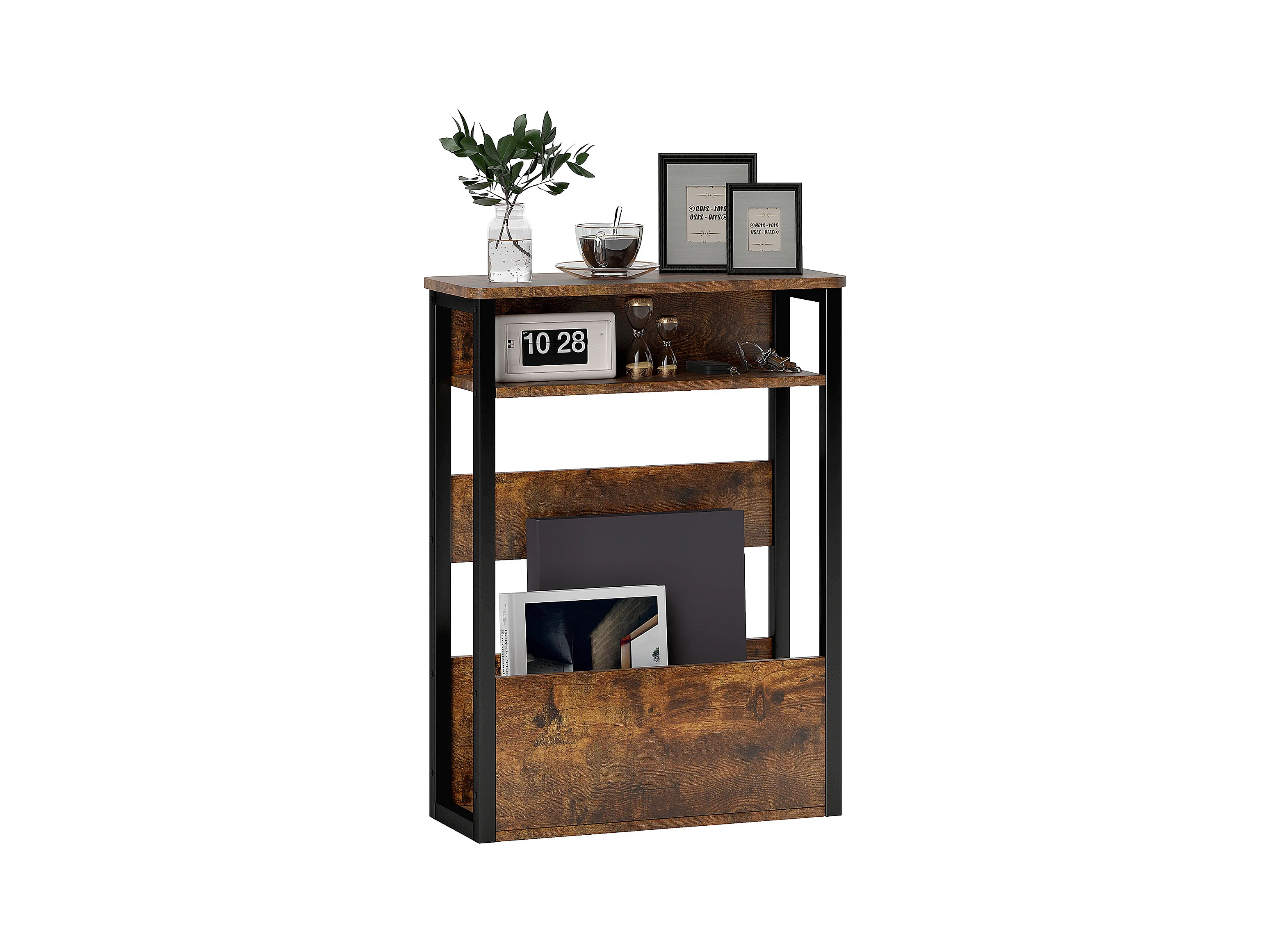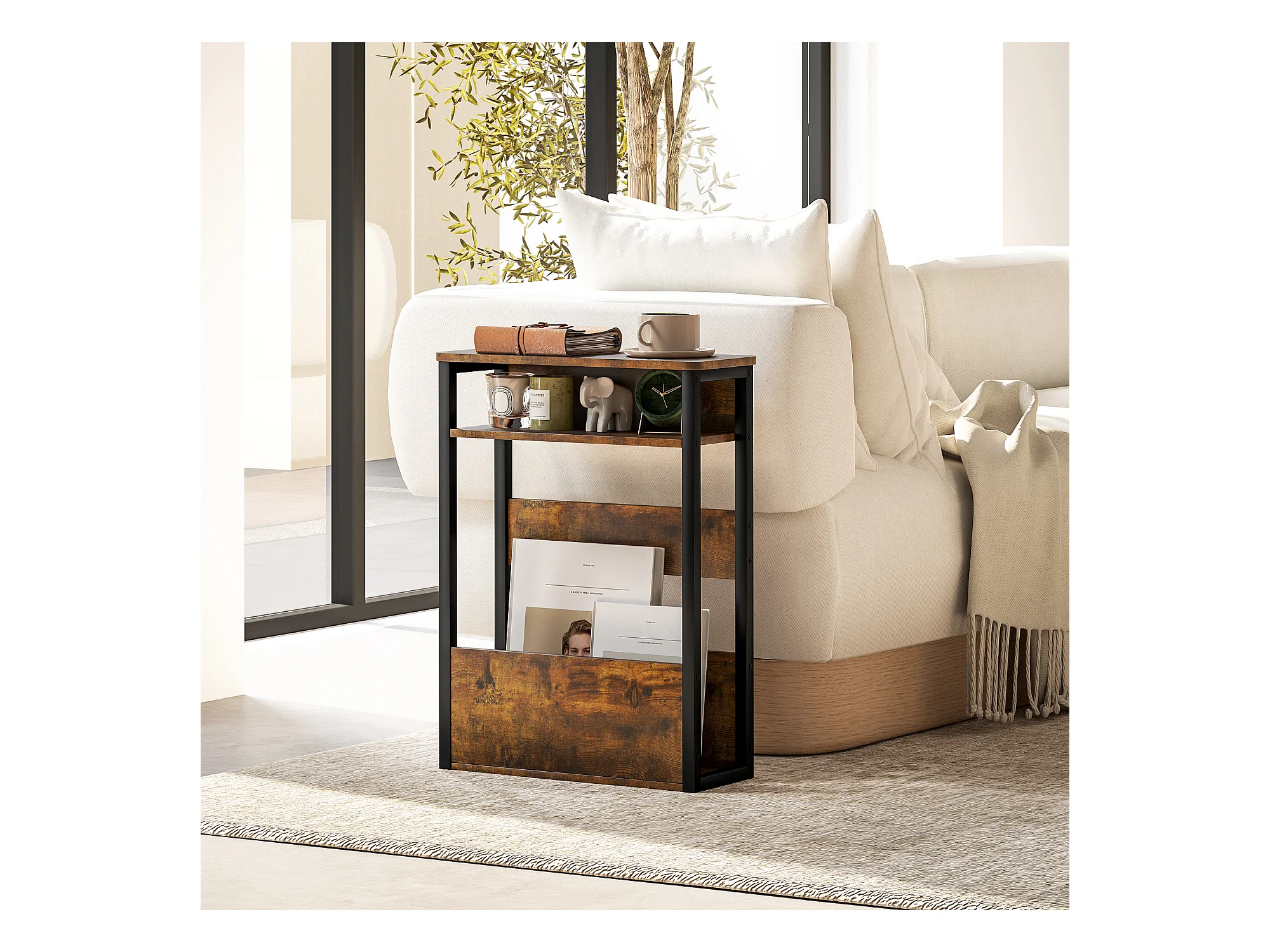 Tavolino a forma di c con 3 ripiani e 2 scomparti aperti marrone